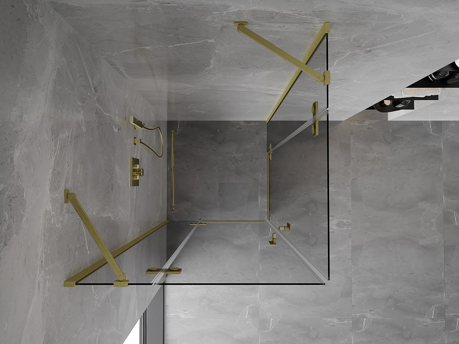 Mexen Mist-H Dviguba atveriama dušo kabina 115 x 115 cm, skaidri, paauksuota šukuotu efektu - 8A5-115L-115P-55-00