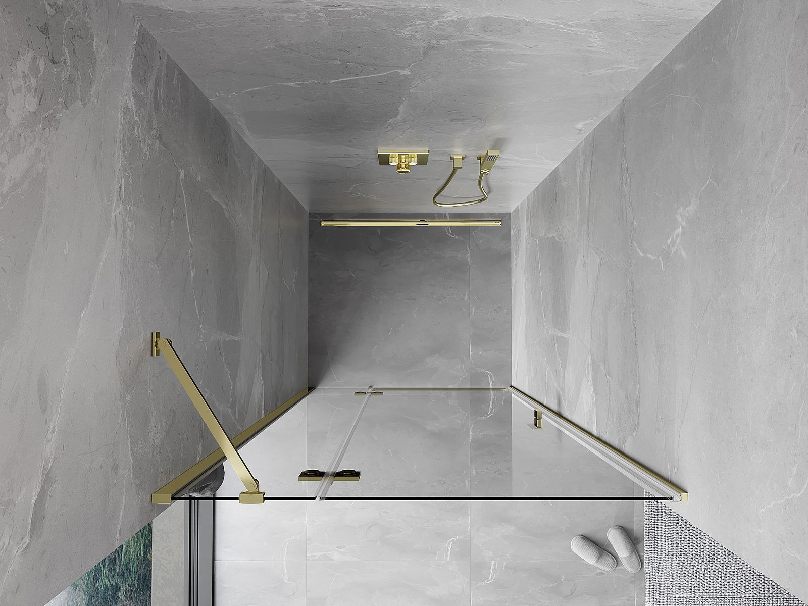 Mexen Mist-H kairiosios pusės dušo durys 100 cm, skaidrios, auksinės - 8A5-100-000-50-00-L