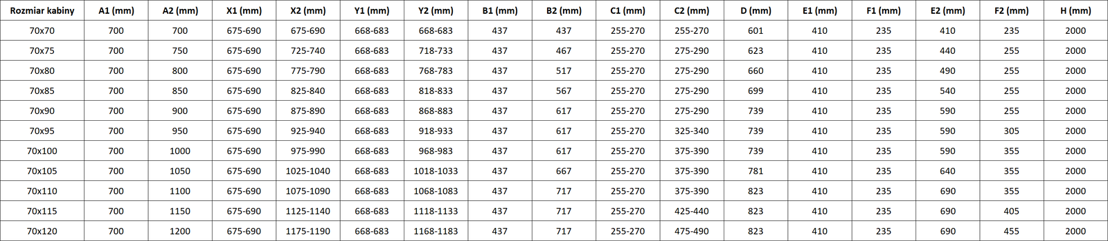 Dušo kabinos, durys ir sienelės yra standartiškai pritaikytos montuoti ant nustatytų matmenų dušo padėklų. Būtent šie matmenys nurodomi gaminio pavadinime arba aprašyme. Tačiau atkreipkite dėmesį, kad faktiniai elementų matmenys gali šiek tiek skirtis nuo vardinių verčių. Planuojant montuoti tiesiai ant grindų, rekomenduojama atidžiai patikrinti išorinius matmenis ir elementų išdėstymą pagal techninį brėžinį.