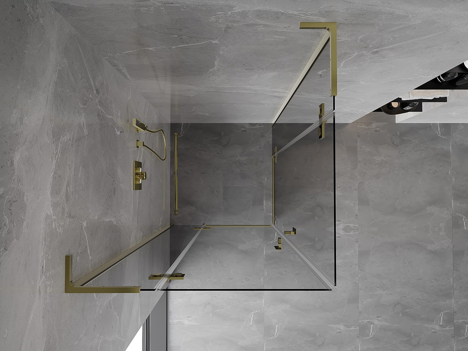 Mexen Mist-H L Dvivietė dušo kabina su atveriamomis durimis 85 x 85 cm, skaidri, auksinė - 8A5L-085L-085P-50-00
