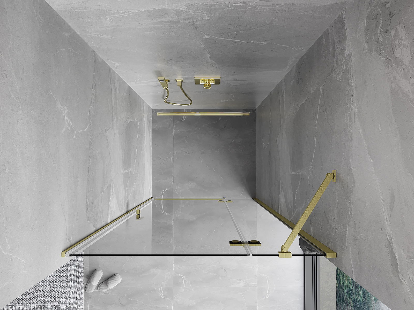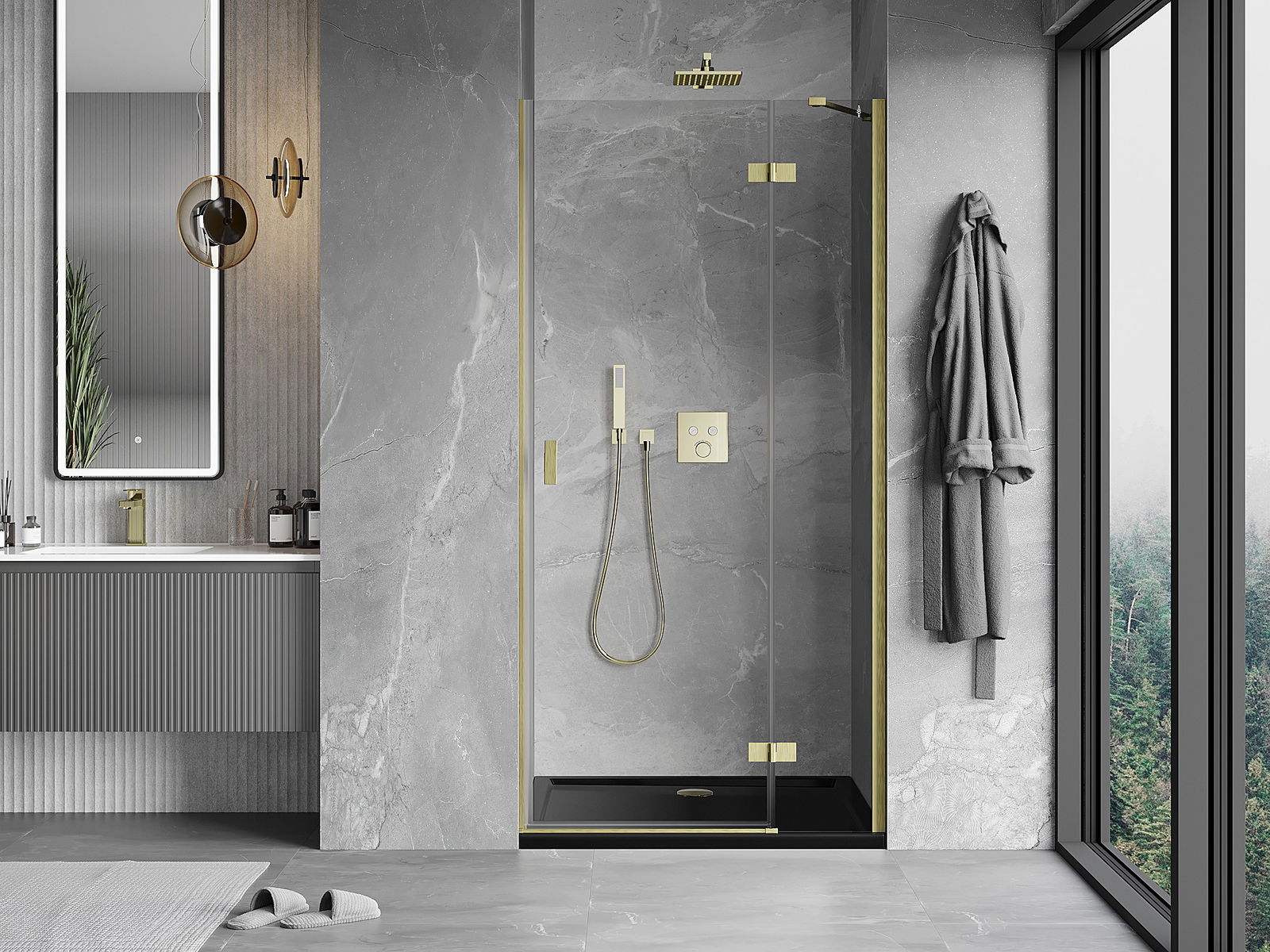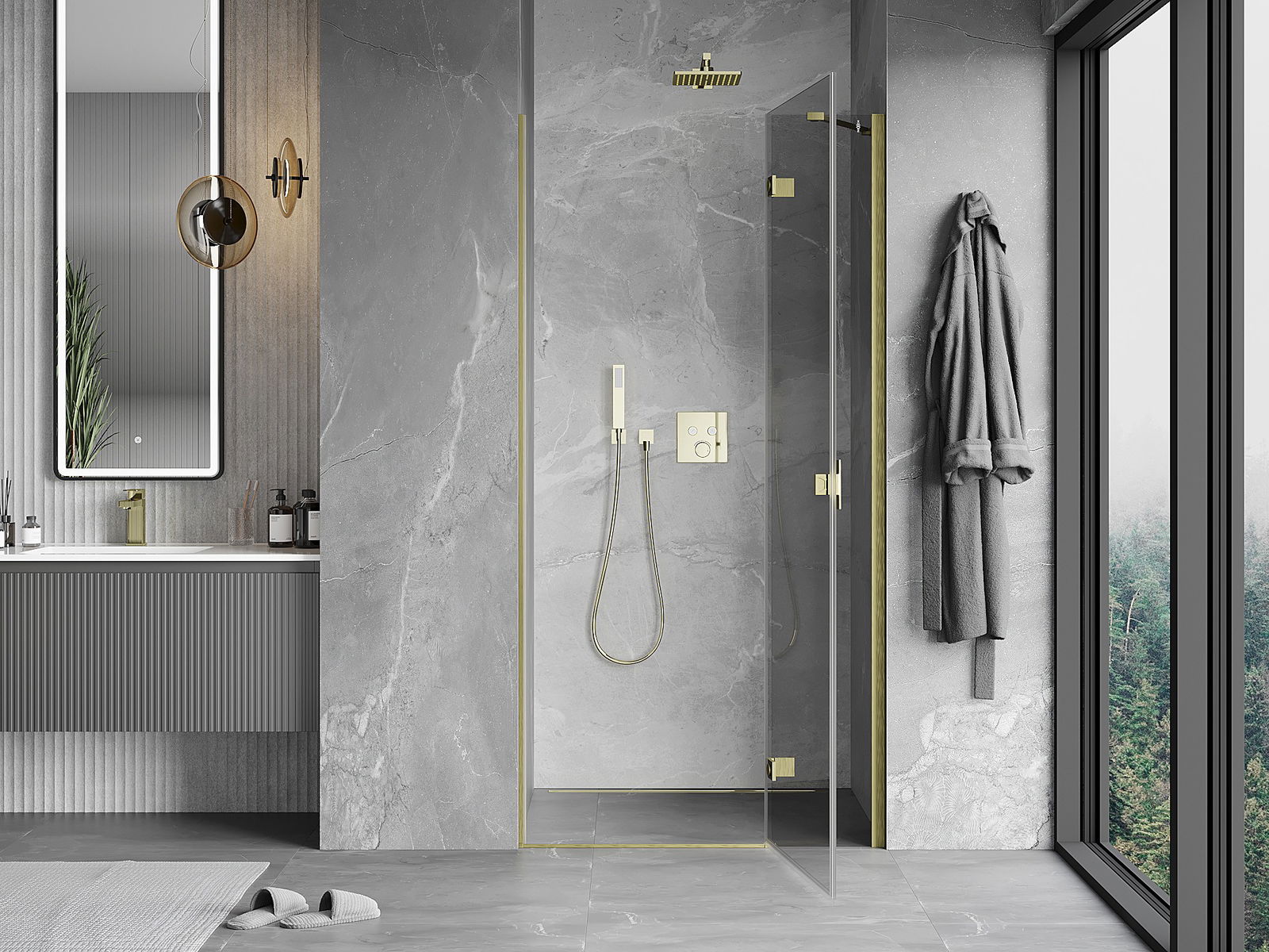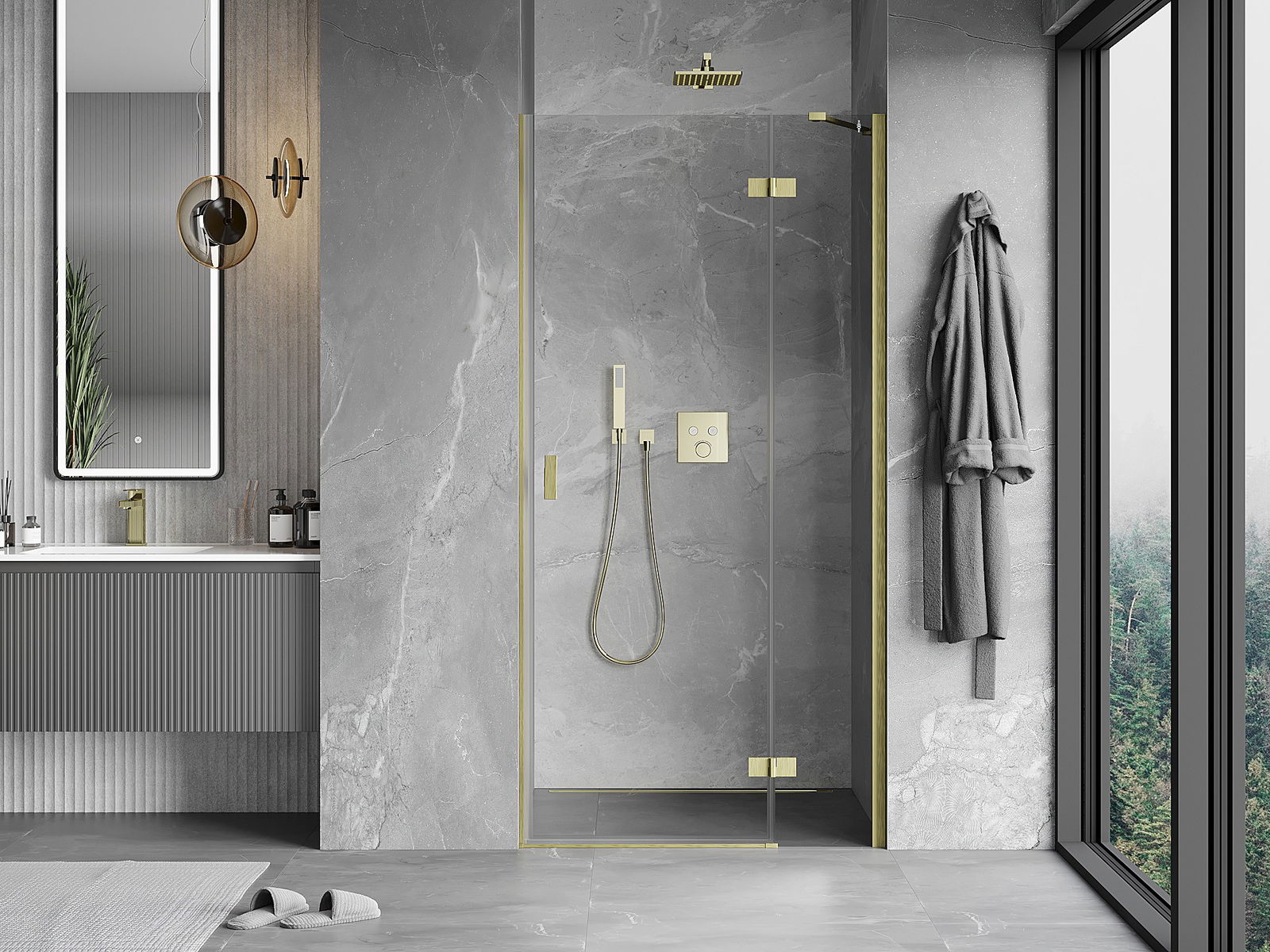 Mexen Mist-H dešinės pusės dušo durys 85 cm, skaidrios, šlifuotas auksas - 8A5-085-000-55-00-P