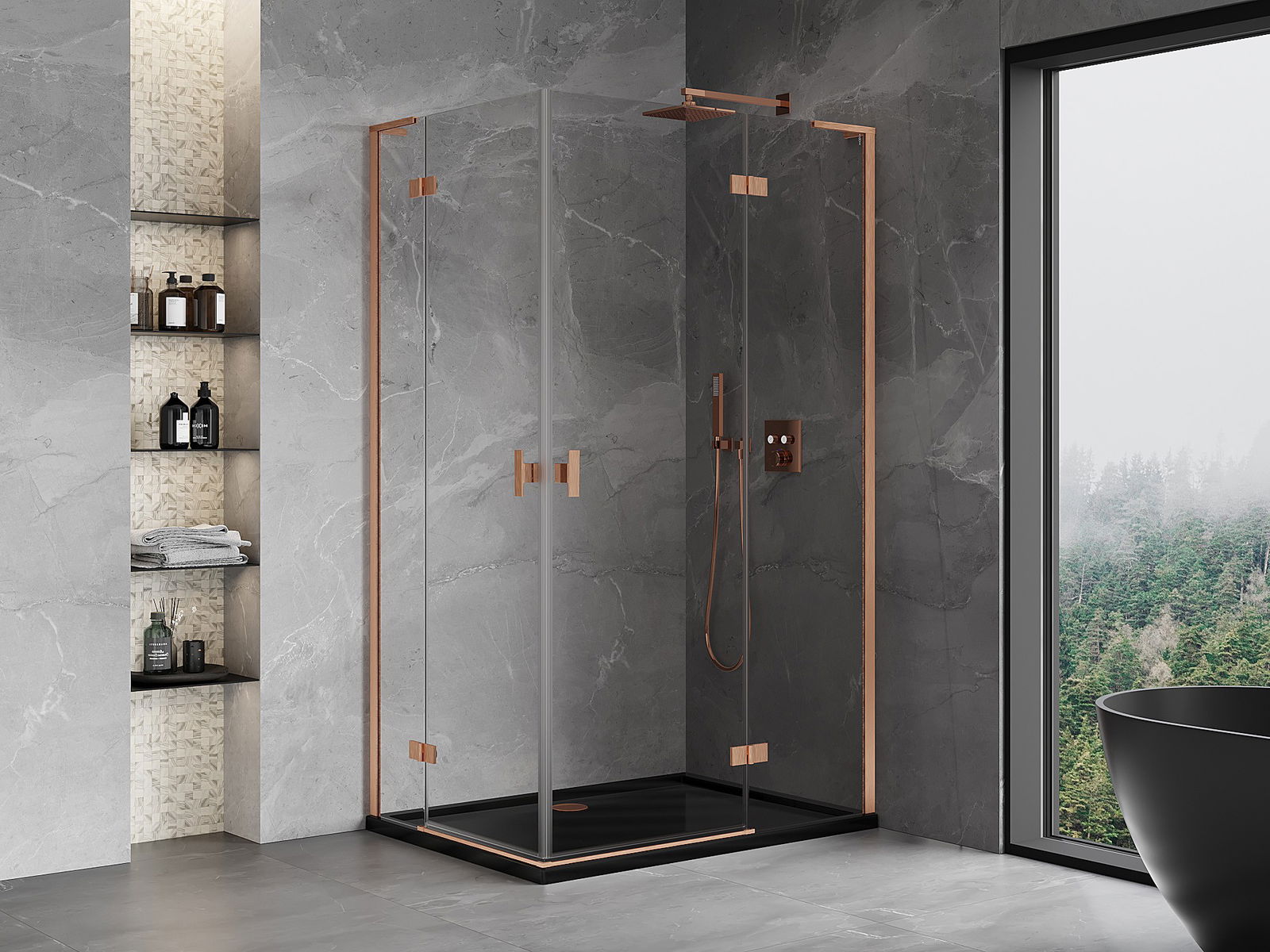 Mexen Mist-H L Duo į dešinę atsidaranti dušo kabina 100 x 120 cm, skaidri, šlifuota varinė - 8A5L-100L-120P-65-00