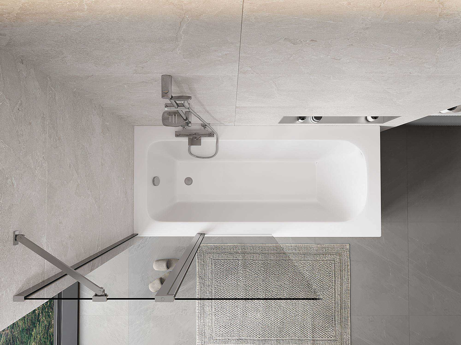 Efektyvi apsauga nuo vandens išsiliejimo maudymosi metu. Sienelė turi tarpines, kurios idealiai priglunda prie stiklo paviršiaus ir vonios krašto. Funkcionalus sprendimas, užtikrinantis saugumą ir lengvą švaros palaikymą.