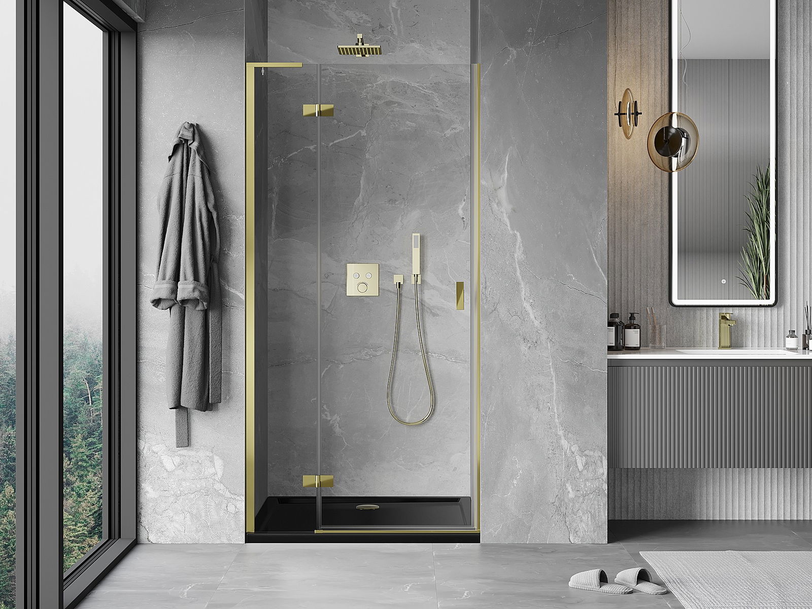 Mexen Mist-H L kairiosios pusės dušo durys 85 cm, skaidrios, auksinės - 8A5L-085-000-50-00-L