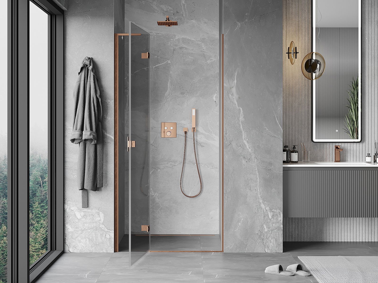 Mexen Mist-H L kairinės pusės dušo durys, varstomos, 115 cm, skaidrios, šlifuotas varis - 8A5L-115-000-65-00-L