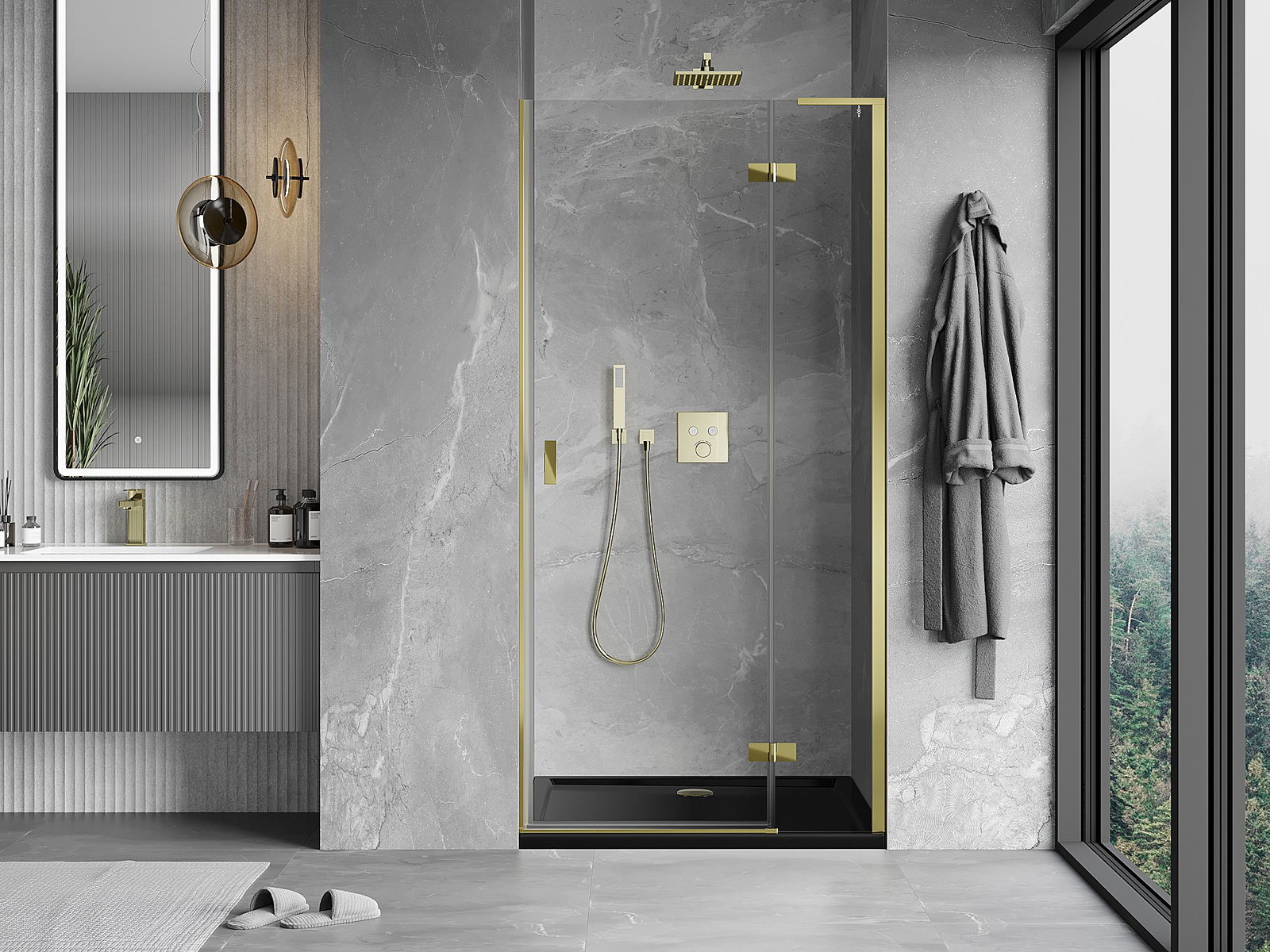 Mexen Mist-H L dešinės pusės dušo durys, 70 cm, skaidrios, auksinės - 8A5L-070-000-50-00-P