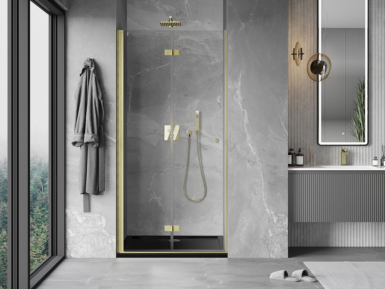 Galimybė sulenkti duris, tiek į išorę, tiek į vidų, leidžia gauti daugiau erdvės nenaudojant dušo. Tai yra idealus sprendimas mažesnėms vonios kambariams, maksimaliai išnaudojantis turimą plotą.