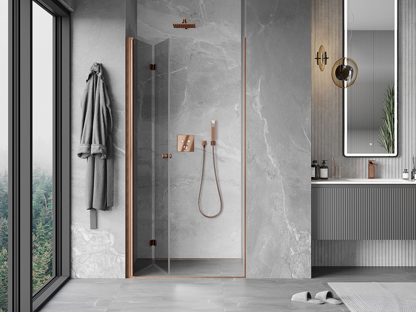Galimybė sulenkti duris, tiek į išorę, tiek į vidų, leidžia gauti daugiau erdvės nenaudojant dušo. Tai yra idealus sprendimas mažesnėms vonios kambariams, maksimaliai išnaudojantis turimą plotą.