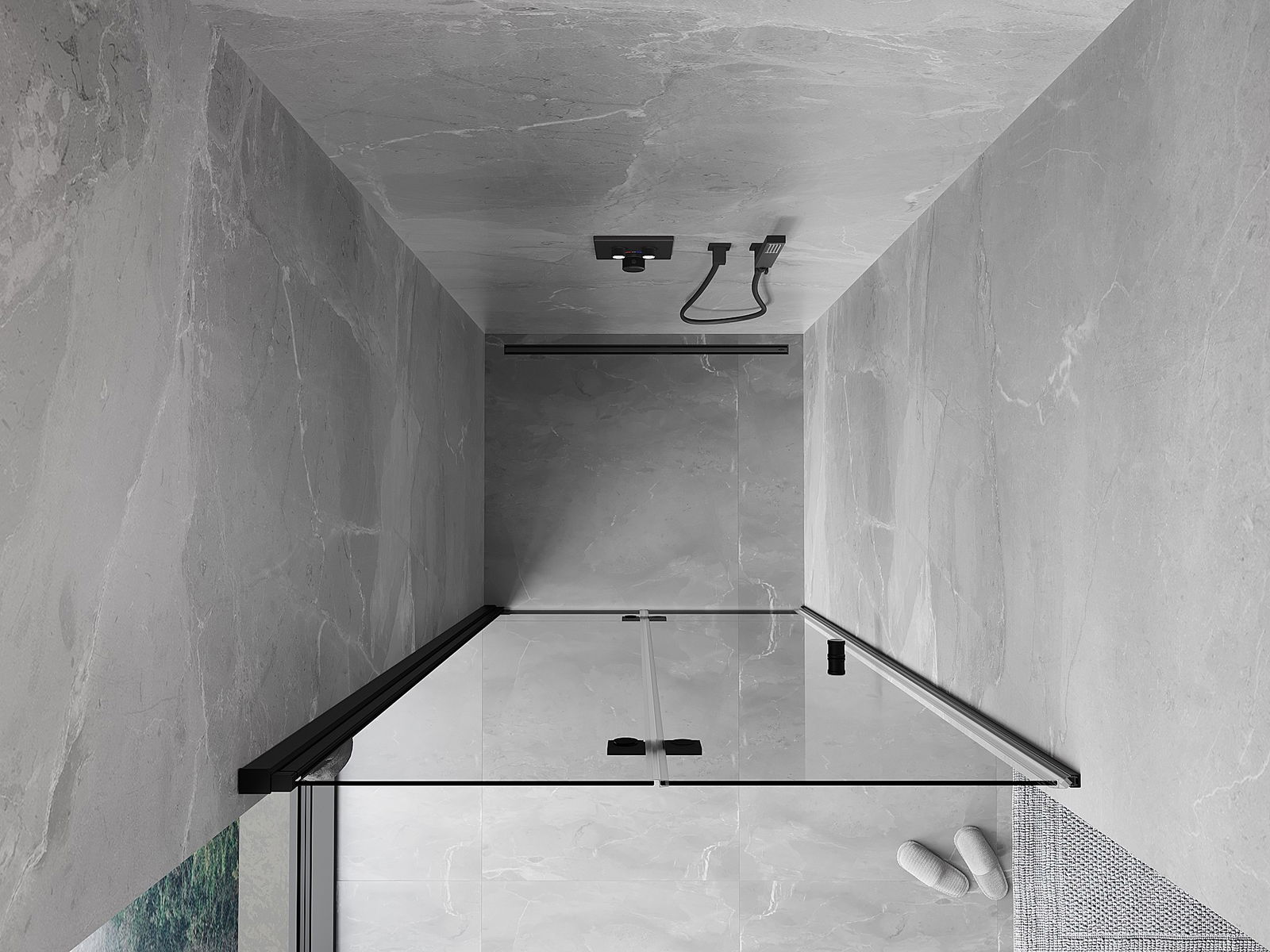 Mexen Mist-F sulankstomos dušo durys kairėje 95 cm, permatomos, juodos - 8A6-095-000-70-00-L