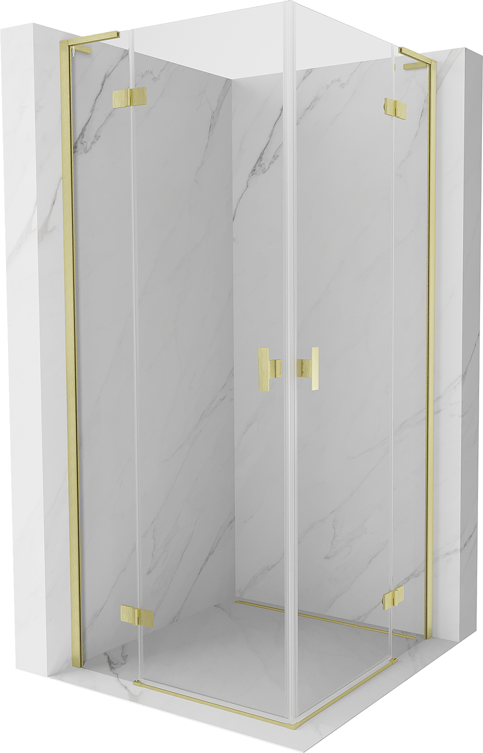 Mexen Mist-H L Dviguba dušo kabina, 110 x 110 cm, permatomas, šlifuotas auksas - 8A5L-110L-110P-55-00
