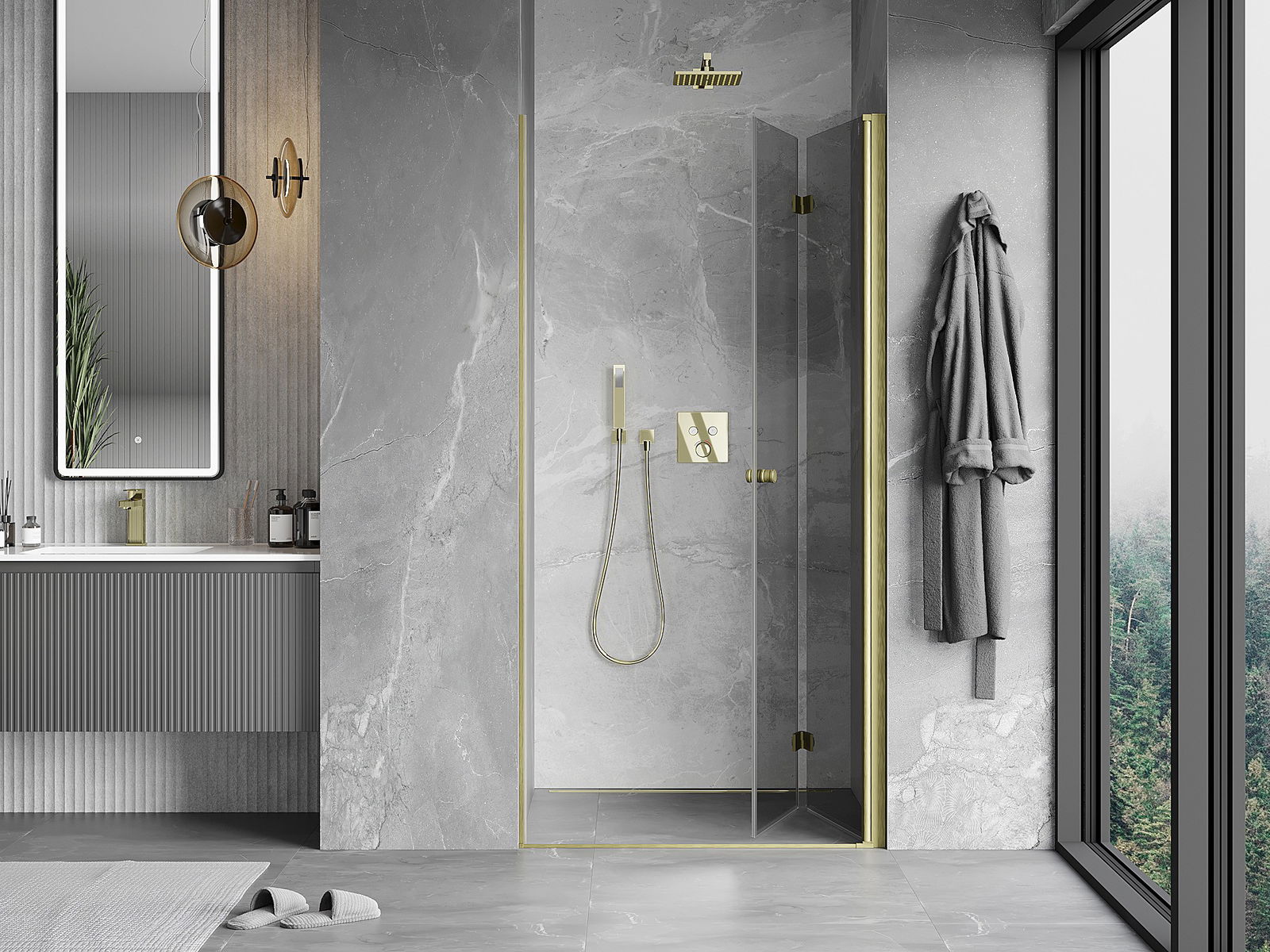 Galimybė sulenkti duris, tiek į išorę, tiek į vidų, leidžia gauti daugiau erdvės nenaudojant dušo. Tai yra idealus sprendimas mažesnėms vonios kambariams, maksimaliai išnaudojantis turimą plotą.