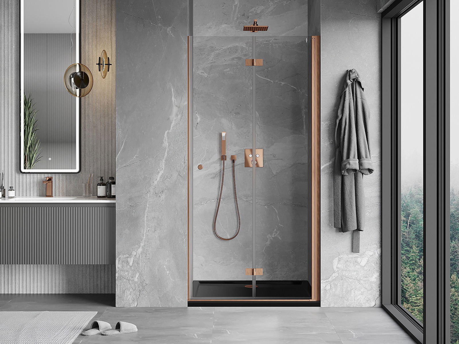 Mexen Mist-F sulankstomos dušo durys dešinės 60 cm, skaidrios, šlifuota varis - 8A6-060-000-65-00-P