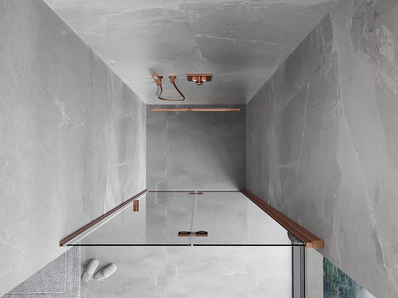 Mexen Mist-F sulankstomos dušo durys dešinės pusės 75 cm, skaidrios, šlifuotas varis - 8A6-075-000-65-00-P