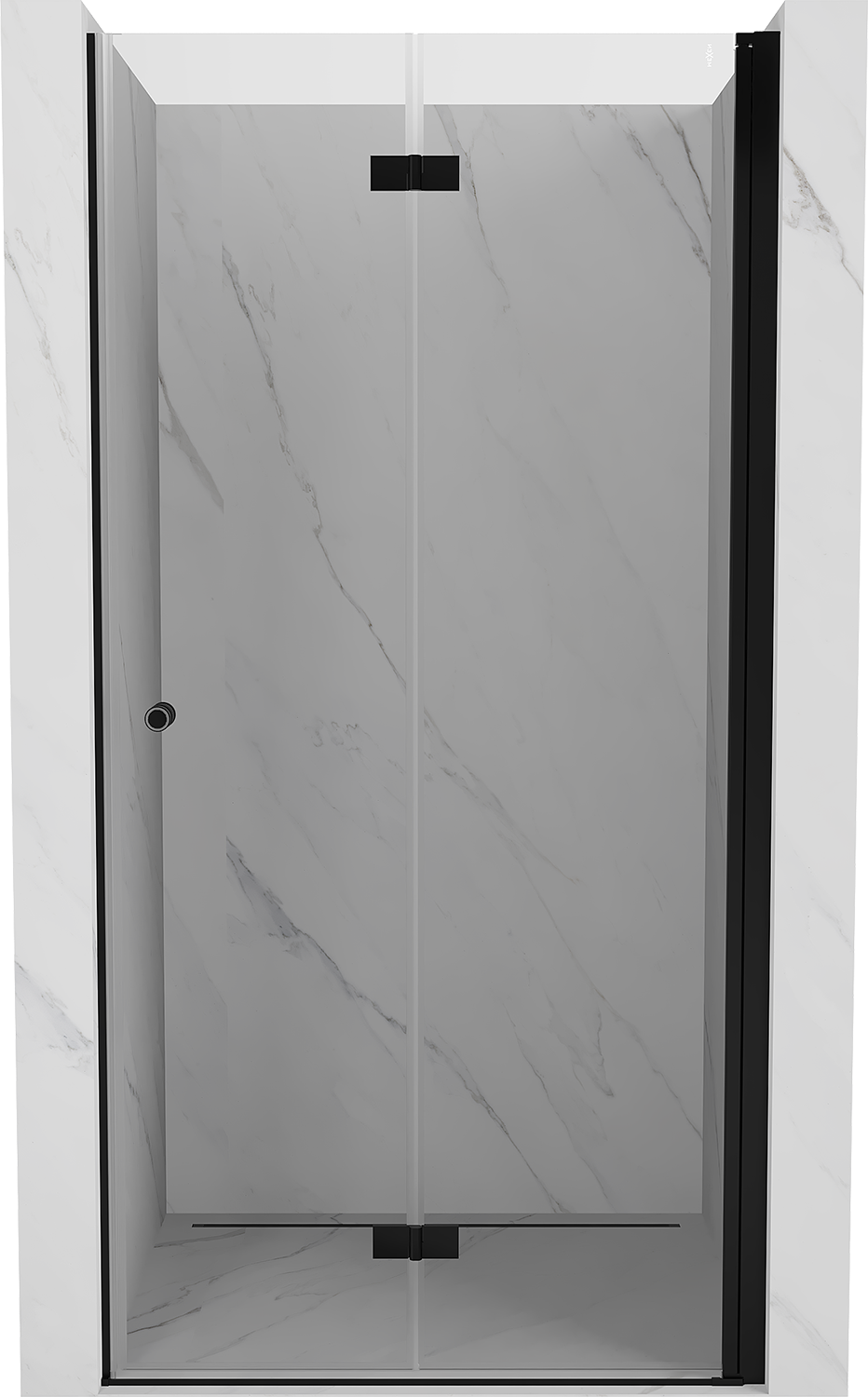 Mexen Mist-F sulankstomos dušo durys dešinės 85 cm, permatomos, juodos - 8A6-085-000-70-00-P