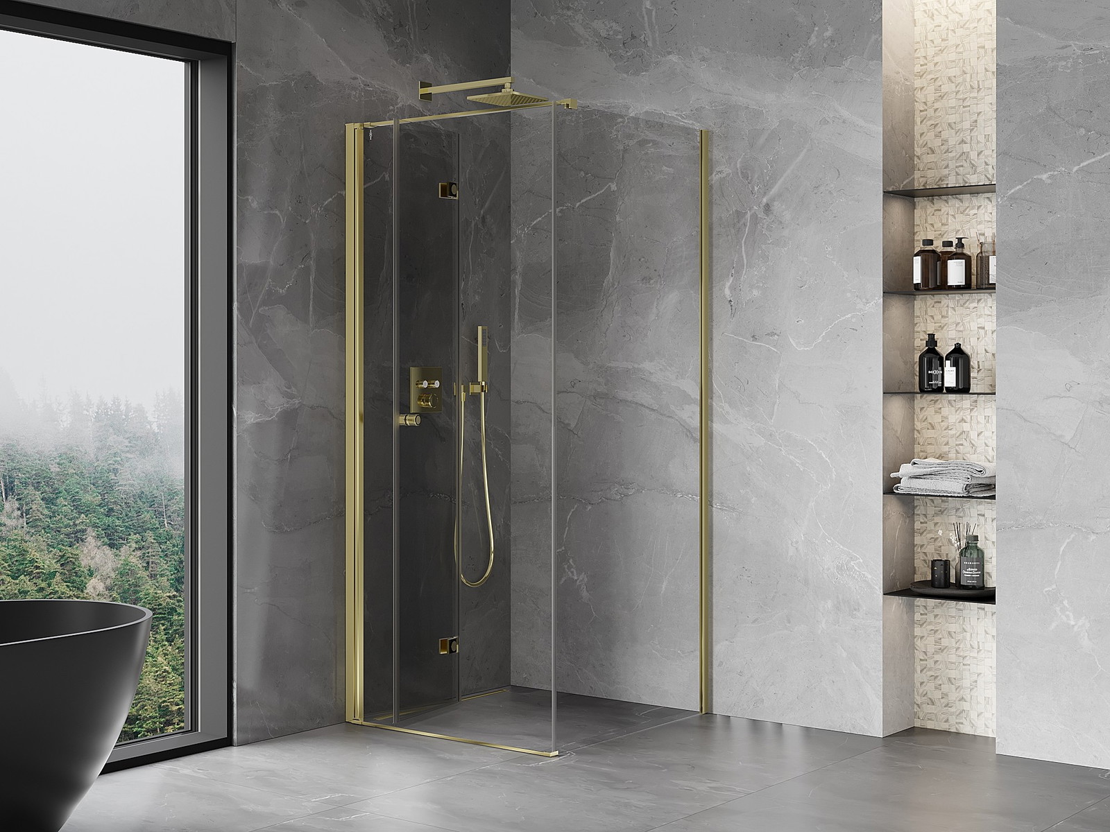 Galimybė sulenkti duris, tiek į išorę, tiek į vidų, leidžia gauti daugiau erdvės nenaudojant dušo. Tai yra idealus sprendimas mažesnėms vonios kambariams, maksimaliai išnaudojantis turimą plotą.