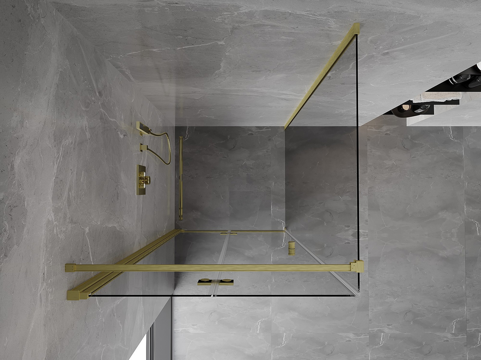 Mexen Mist-F sulankstoma dušo kabina, kairė 80 x 80 cm, permatoma, auksinė šlifuota - 8A6T-080-080-55-00-L