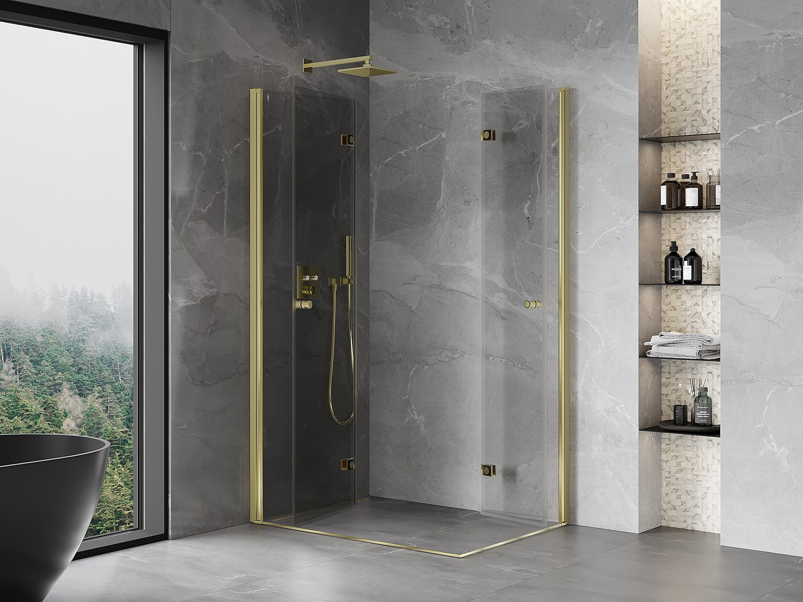 Mexen Mist-F Dviguba dušo kabina su kairiąja sulankstoma durele 75 x 70 cm, skaidrios, auksinės - 8A6-075L-070P-50-00
