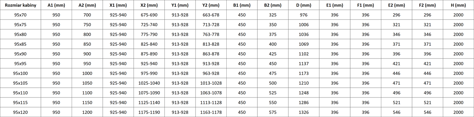 Dydis: 95x90 cm (kairiosios durys 95 cm, dešiniosios durys 90 cm)