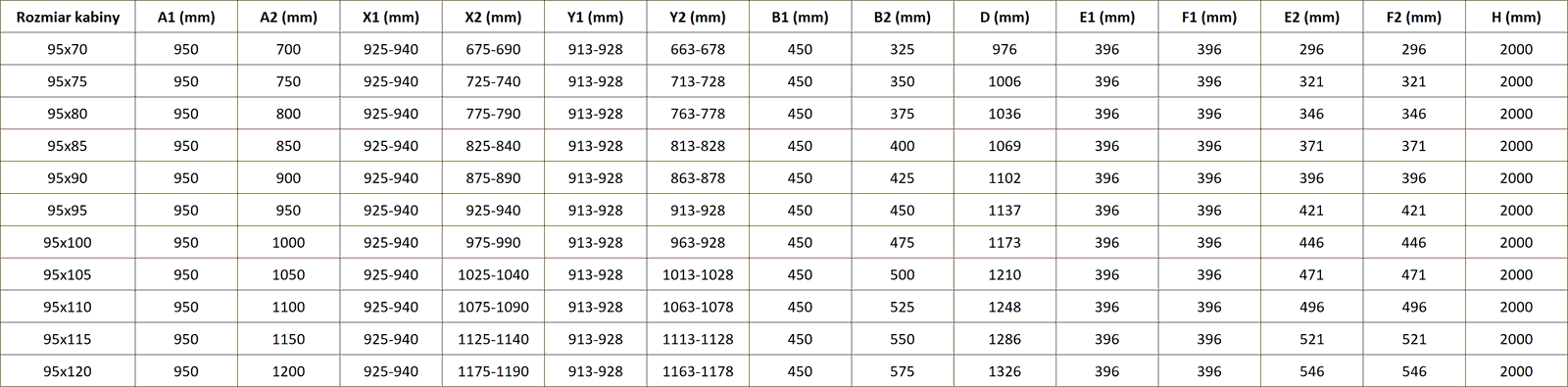 Dydis: 95x90 cm (kairės durys 95 cm, dešinės durys 90 cm)