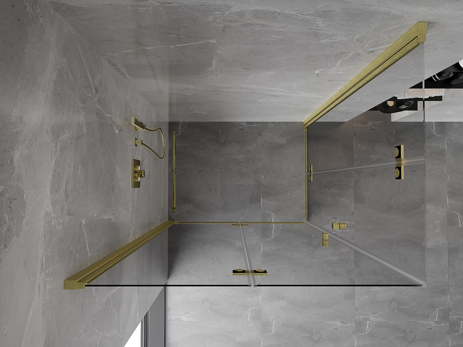 Mexen Mist-F Dviguba sulankstoma dušo kabina kairioji 90 x 70 cm, permatoma, šlifuotas auksas - 8A6-090L-070P-55-00