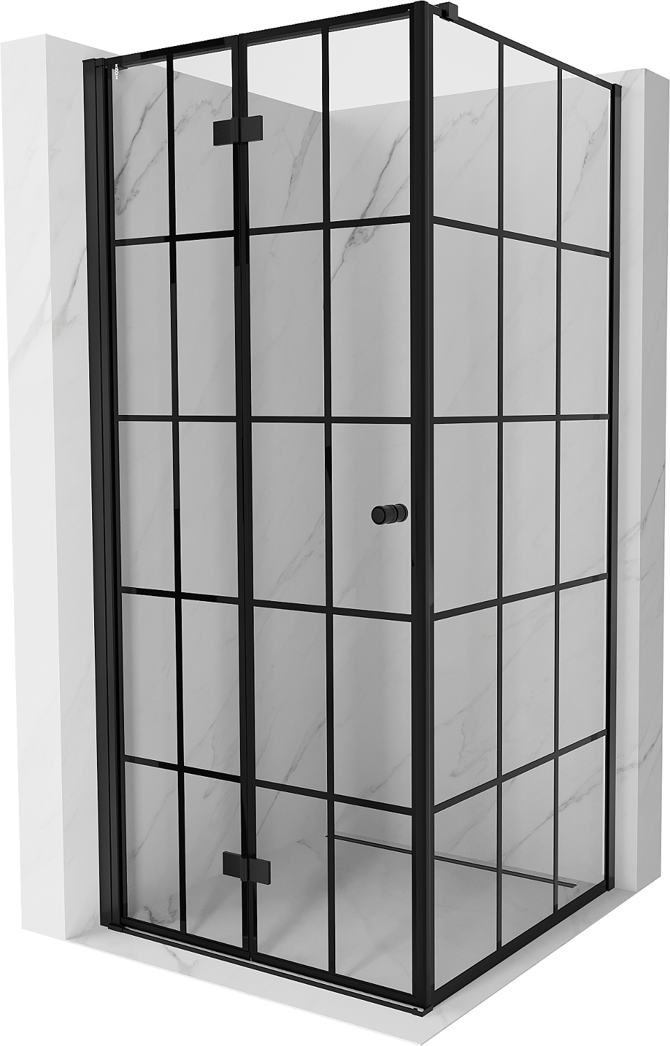 Mexen Mist-F sulenama dušo kabina kairioji 80 x 80 cm, juodas tinklelis, juoda - 8A6T-080-080-70-77-L