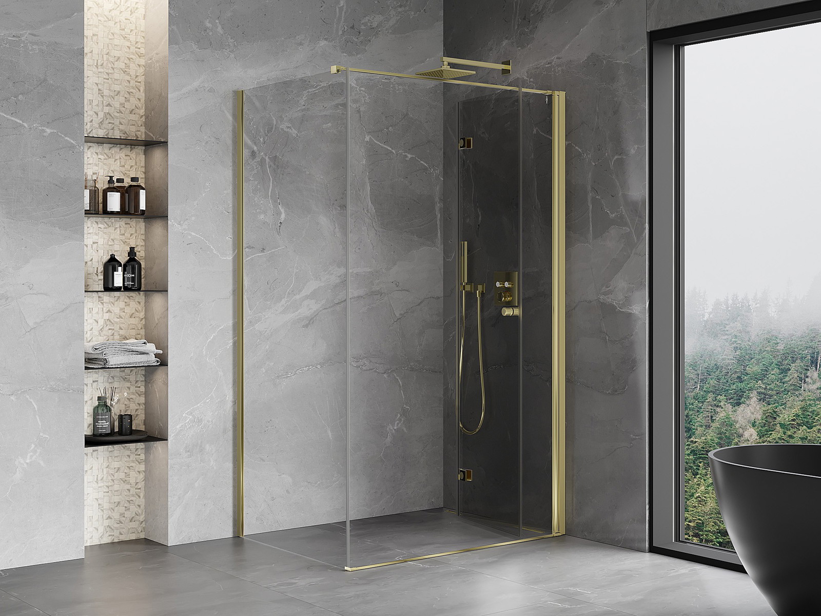 Galimybė sulenkti duris, tiek į išorę, tiek į vidų, leidžia gauti daugiau erdvės nenaudojant dušo. Tai yra idealus sprendimas mažesnėms vonios kambariams, maksimaliai išnaudojantis turimą plotą.