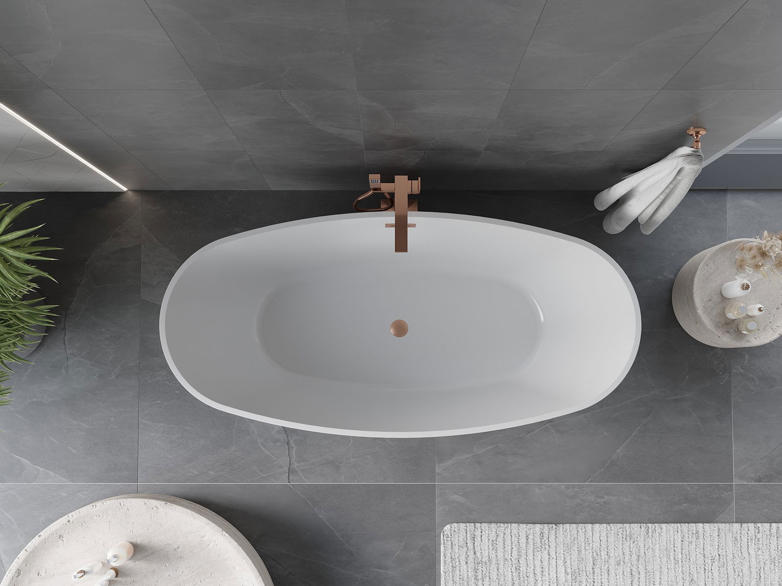 Tai moderni medžiaga, derinanti elegantišką išvaizdą su dideliu patvarumu. Ji atspari mechaniniams pažeidimams, lengvai valoma ir maloni liesti. Permatoma forma ir plonas vonios kraštas suteikia jai lengvumo ir unikalumo, sukuriant įspūdingą akcentą vonios kambario interjere.