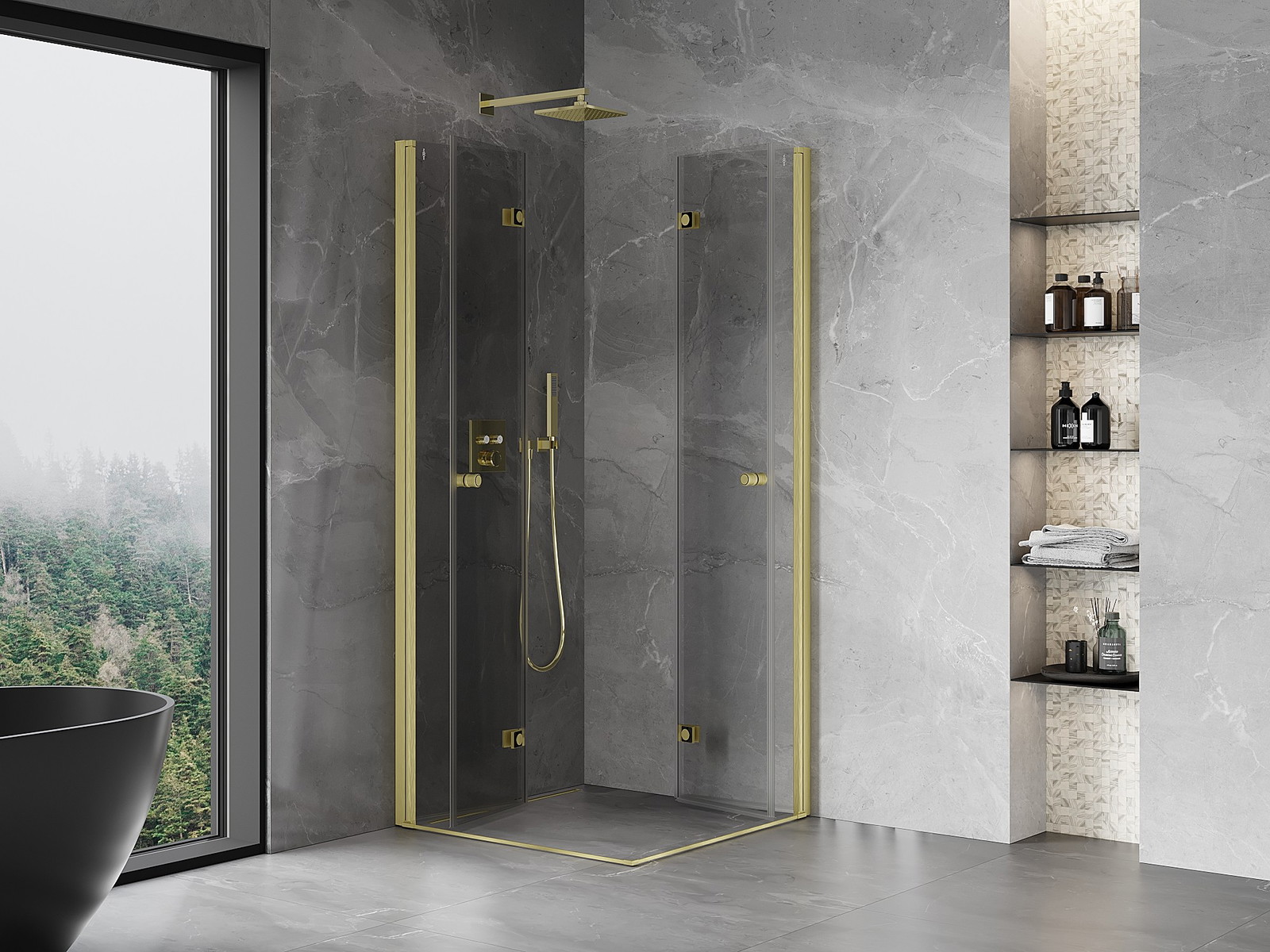 Mexen Mist-F Dviguba sulankstoma dušo kabina 110 x 110 cm, skaidri, auksinė šlifuota - 8A6-110L-110P-55-00