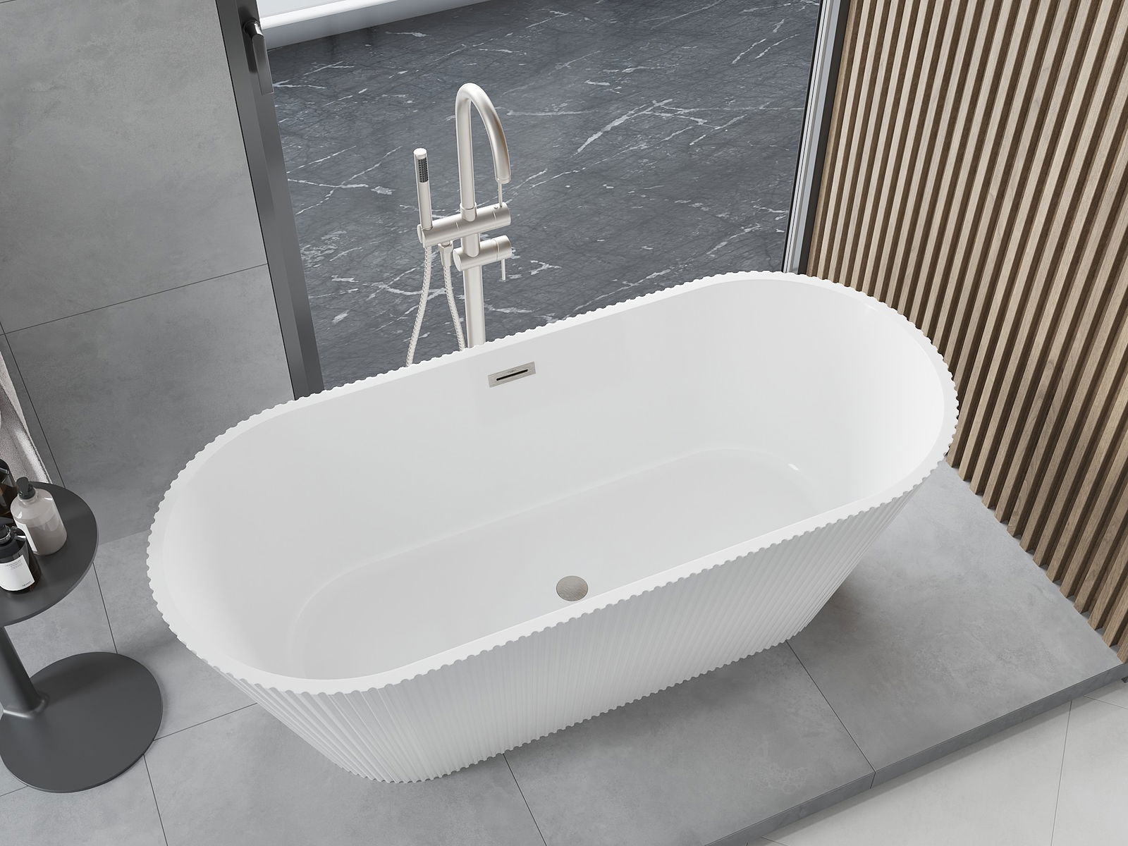 Tai moderni medžiaga, derinanti elegantišką išvaizdą su dideliu patvarumu. Ji atspari mechaniniams pažeidimams, lengvai valoma ir maloni liesti. Permatoma forma ir plonas vonios kraštas suteikia jai lengvumo ir unikalumo, sukuriant įspūdingą akcentą vonios kambario interjere.