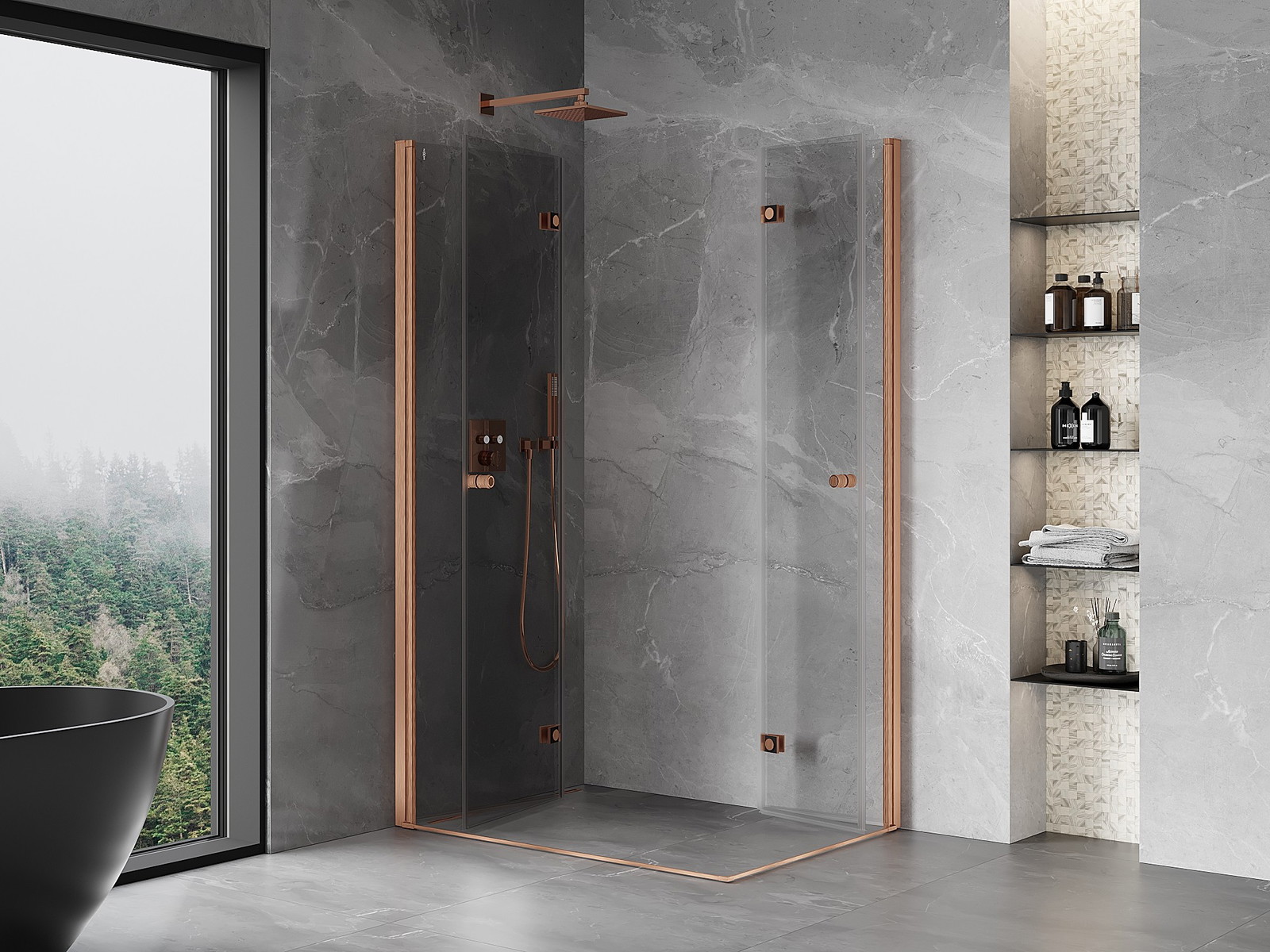 Mexen Mist-F Dviguba dušo kabina, sulankstoma kairė 75 x 70 cm, permatoma, šlifuotas varis - 8A6-075L-070P-65-00