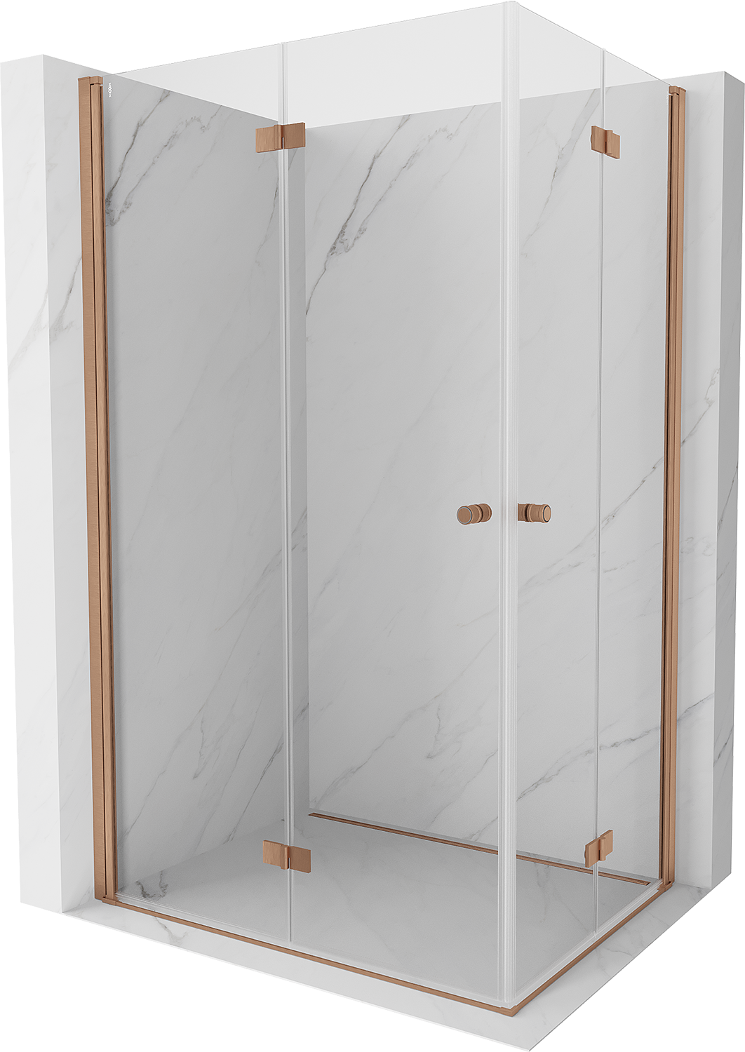 Mexen Mist-F Duo lankstoma dušo kabina kairė 80 x 70 cm, permatoma, šepečiu valyta varis - 8A6-080L-070P-65-00