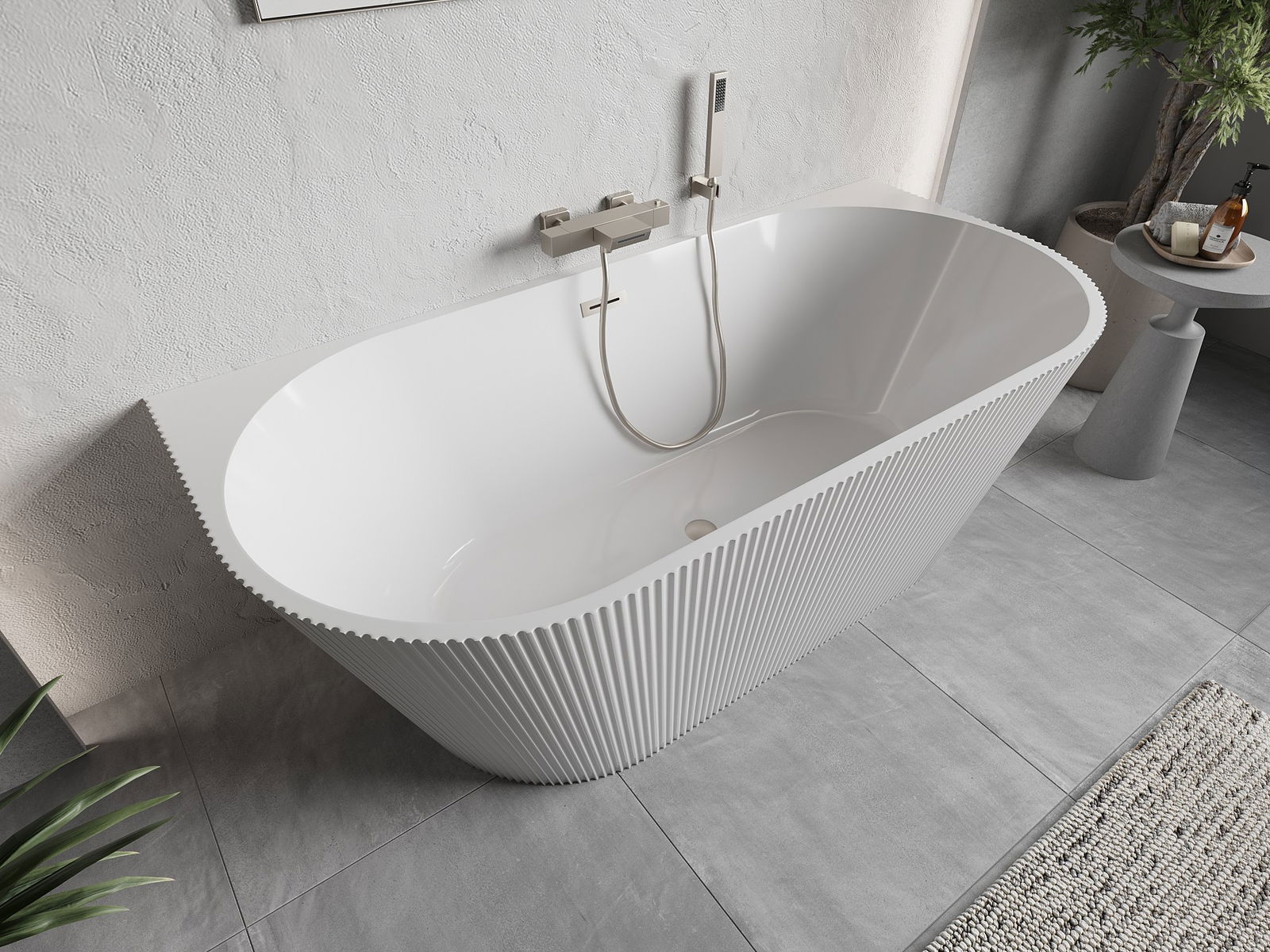 Tai moderni medžiaga, derinanti elegantišką išvaizdą su dideliu patvarumu. Ji atspari mechaniniams pažeidimams, lengvai valoma ir maloni liesti. Permatoma forma ir plonas vonios kraštas suteikia jai lengvumo ir unikalumo, sukuriant įspūdingą akcentą vonios kambario interjere.