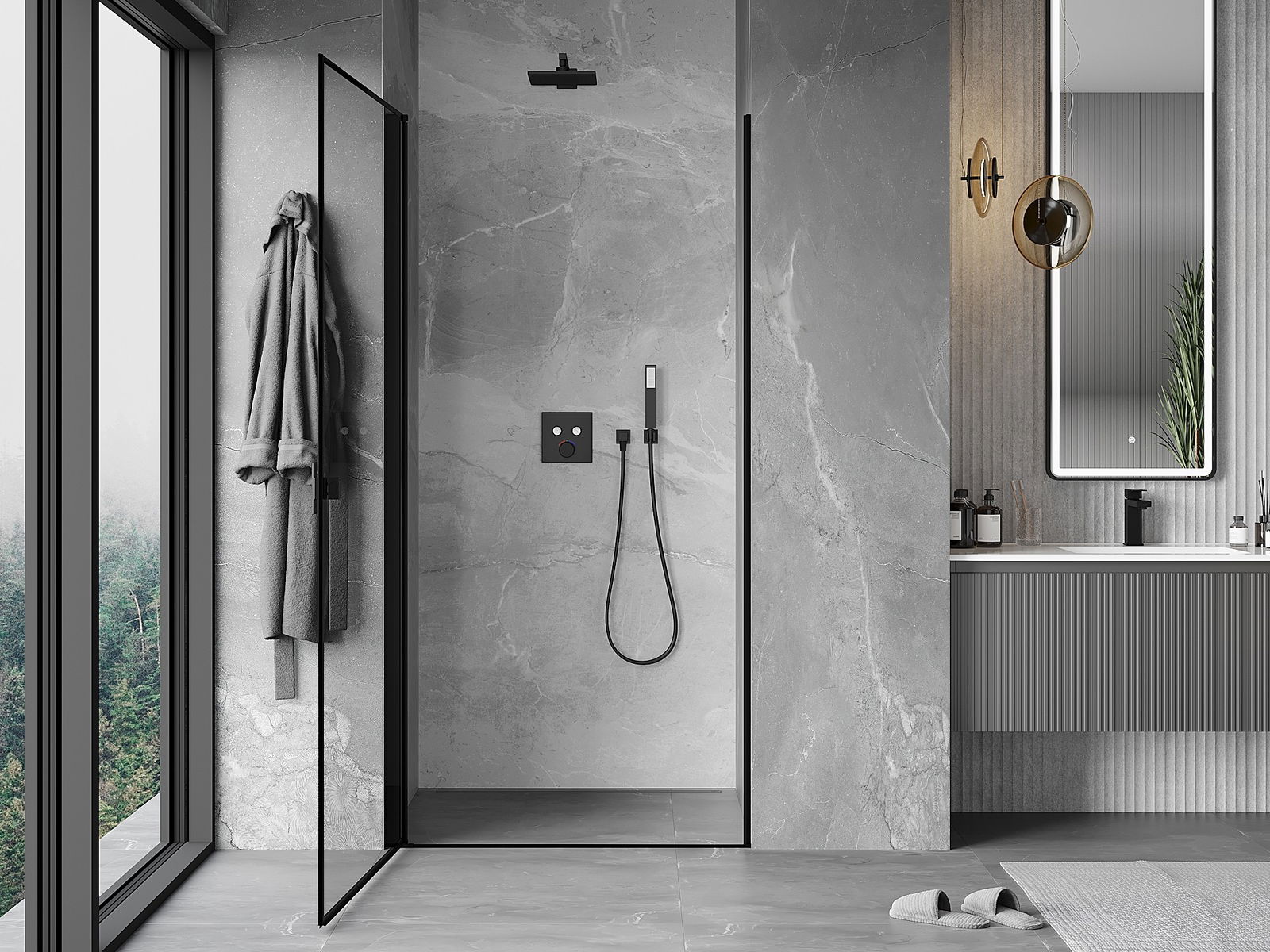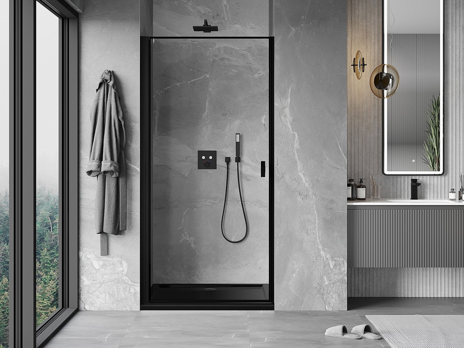 Mexen Mist-B kairinės atveriamos dušo durys 80 cm, juodas rėmelis, juoda - 8A2-080-000-70-70-L