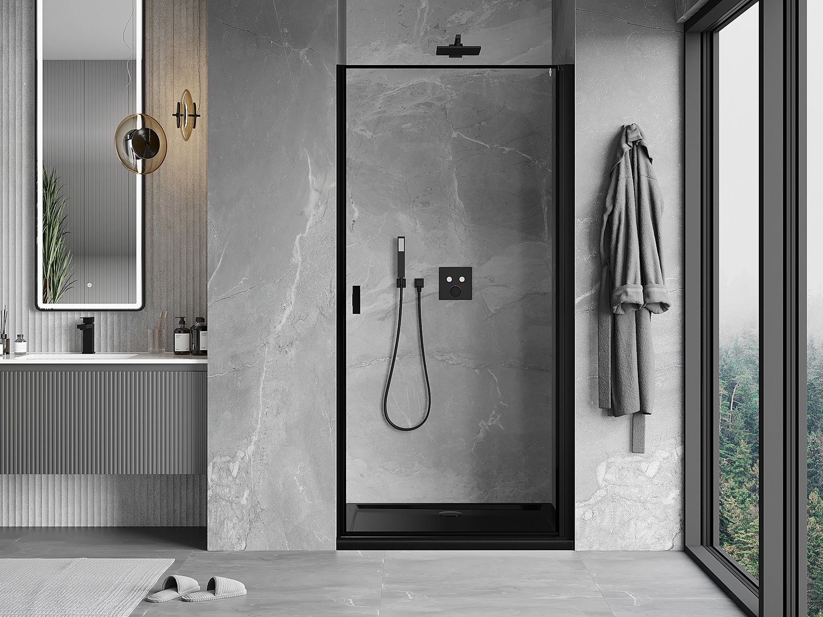 Produktą, atsižvelgiant į poreikius, galima sumontuoti tiek ant dušo padėklo, tiek tiesiogiai ant grindų. Universalus montavimo būdas leidžia pritaikyti produktą įvairių tipų vonios kambariams ir erdvės konfigūracijoms.