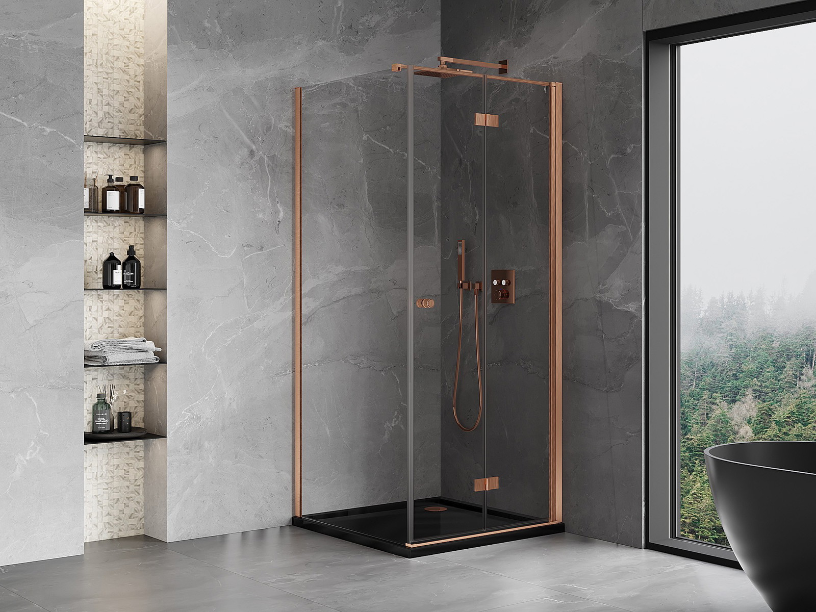 Mexen Mist-F sulankstoma dušo kabina dešinė 90 x 90 cm, permatoma, šepečiu valytas varis - 8A6T-090-090-65-00-P
