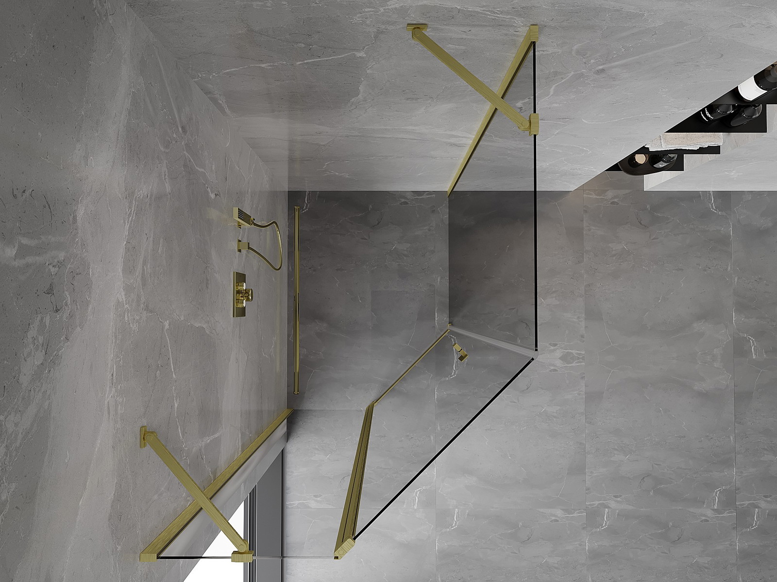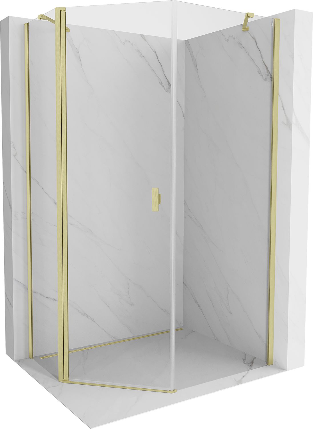 Mexen Mist penkiakampė asimetrinė dušo kabina su atveriamomis durimis 80 x 90 cm, skaidri, auksinė matinė
