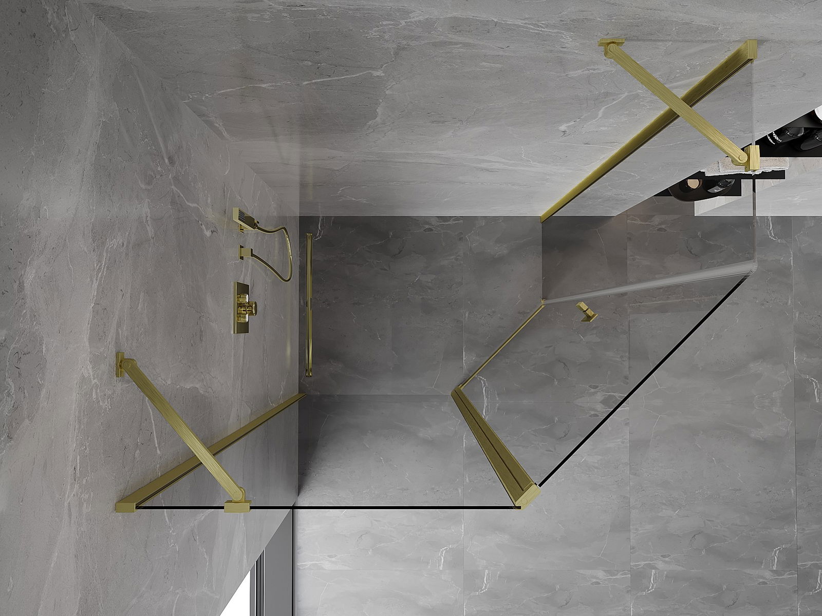 Mexen Mist asimetrinė penkiakampė dušo kabina 100 x 90 cm, skaidri, šlifuotas auksas - 8A8-100-090-55-00