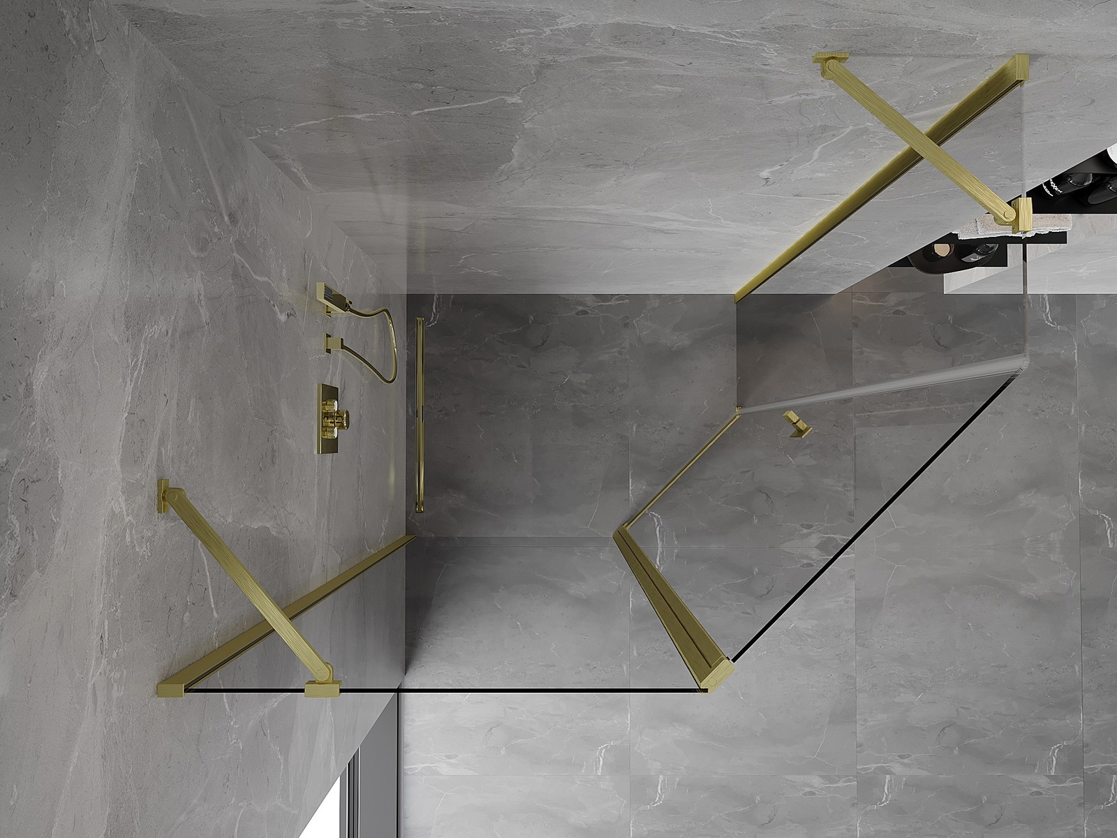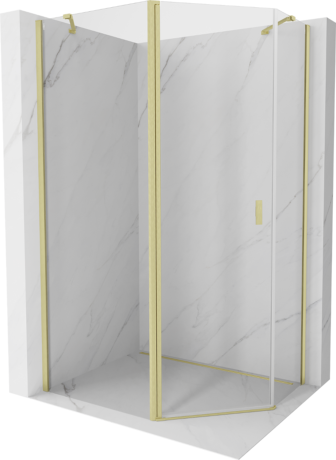 Mexen Mist asimetriška penkiakampė dušo kabina 100 x 90 cm, skaidri, šlifuotas auksas - 8A8-100-090-55-00