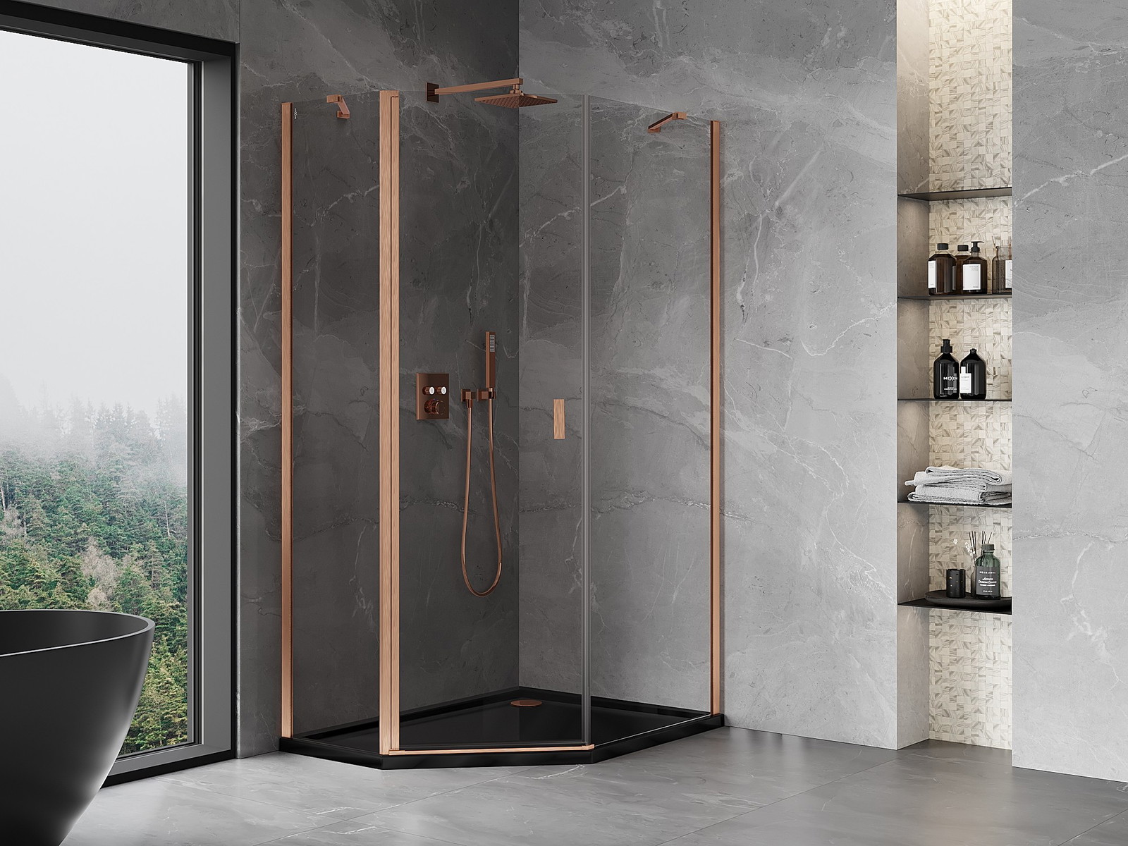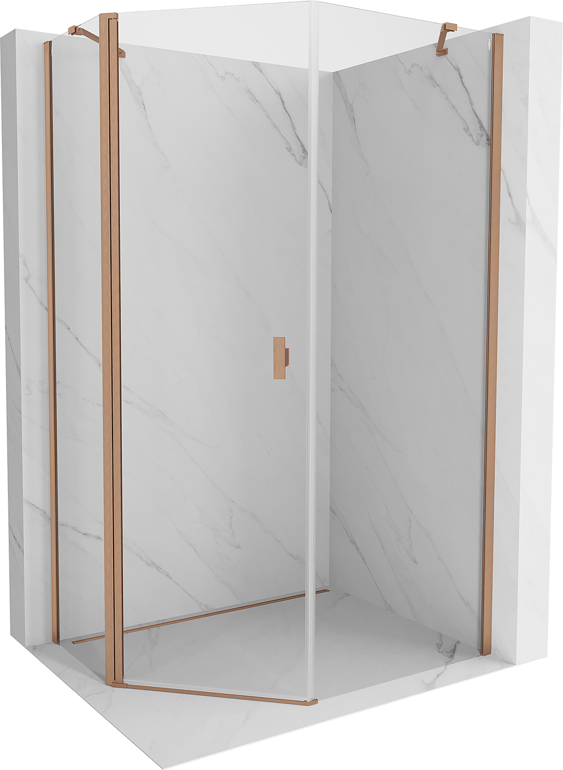Mexen Mist penkiakampė asimetrinė dušo kabina su atveriamomis durimis 80 x 100 cm, skaidri, šlifuota varė