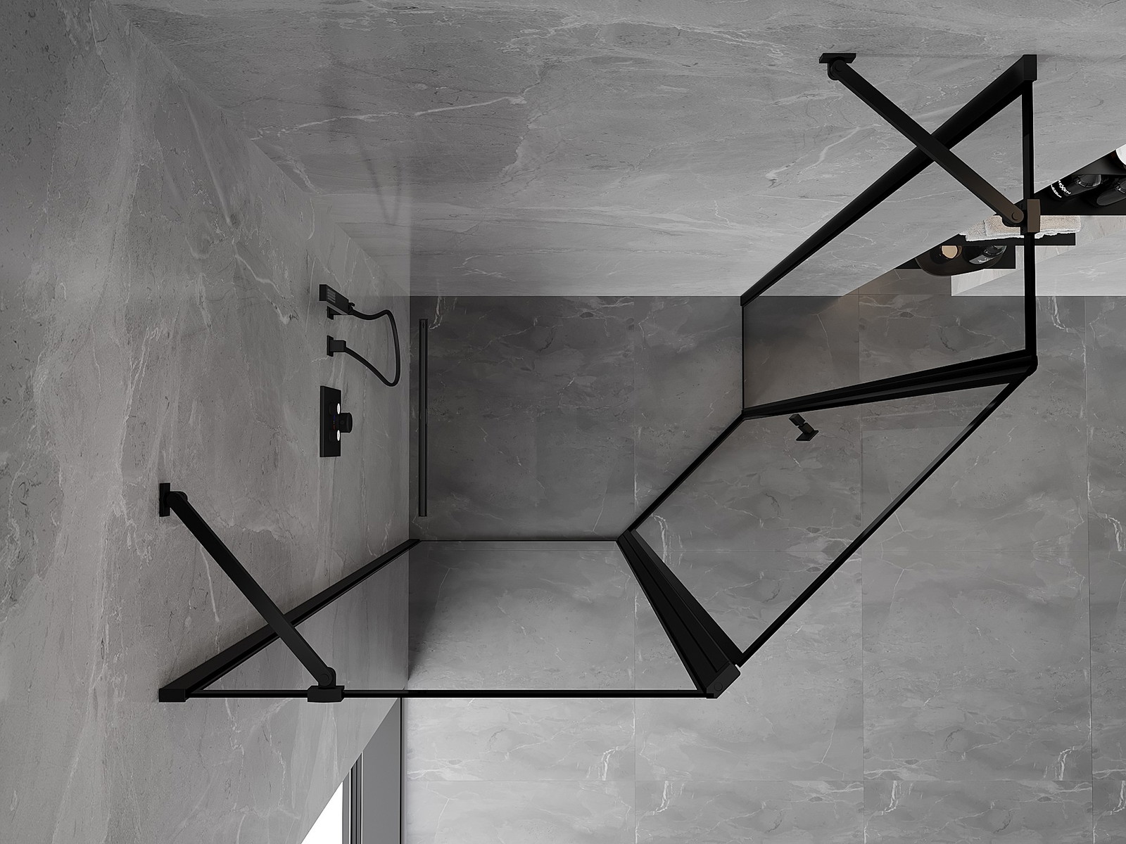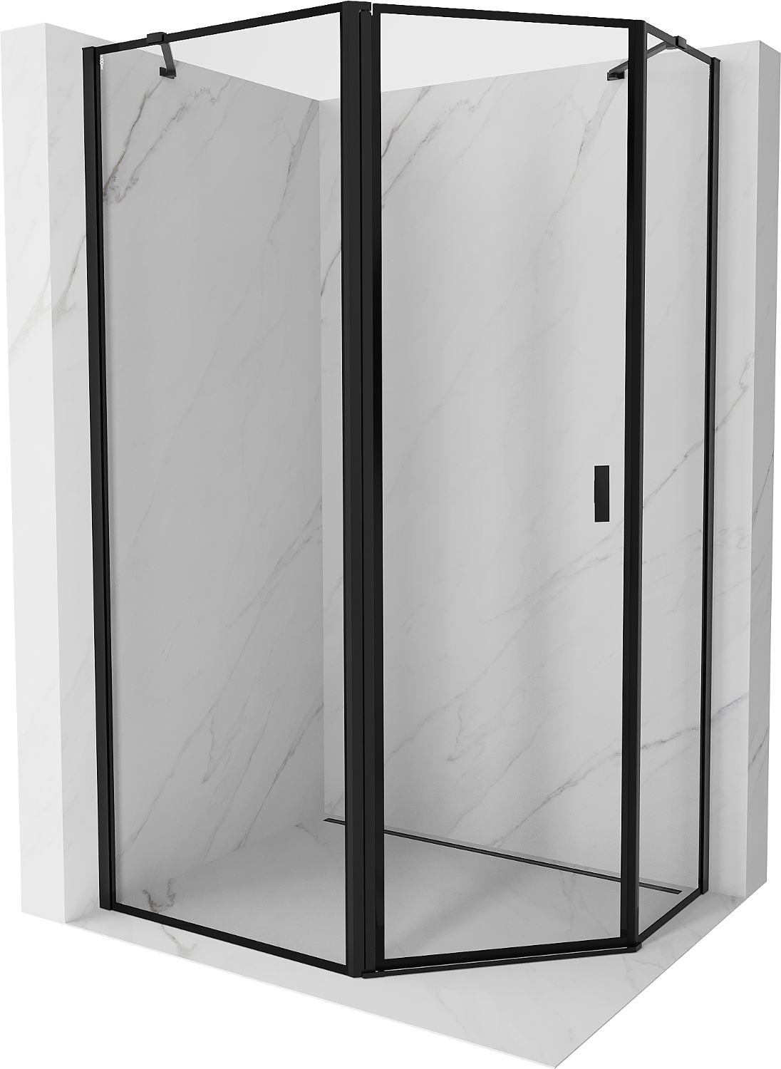Mexen Mist penkiakampė asimetriška dušo kabina su atidaromomis kairėmis durimis 100 x 90 cm, juodas rėmas, juoda