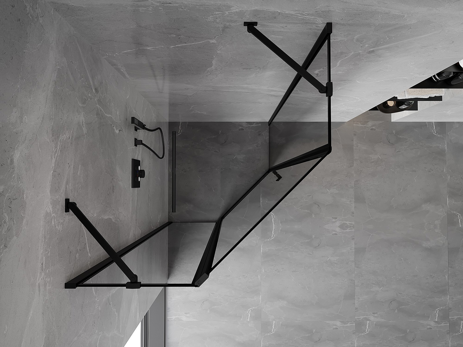 Mexen Mist penkiakampė dušo kabina su atveriamomis durimis, kairinė 100 x 100 cm, juodas rėmas, juoda - 8A8-100-100-70-70-L