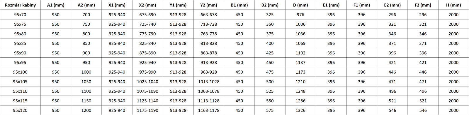 Dydis: 95x90 cm (kairios durys 95 cm, dešinios durys 90 cm)