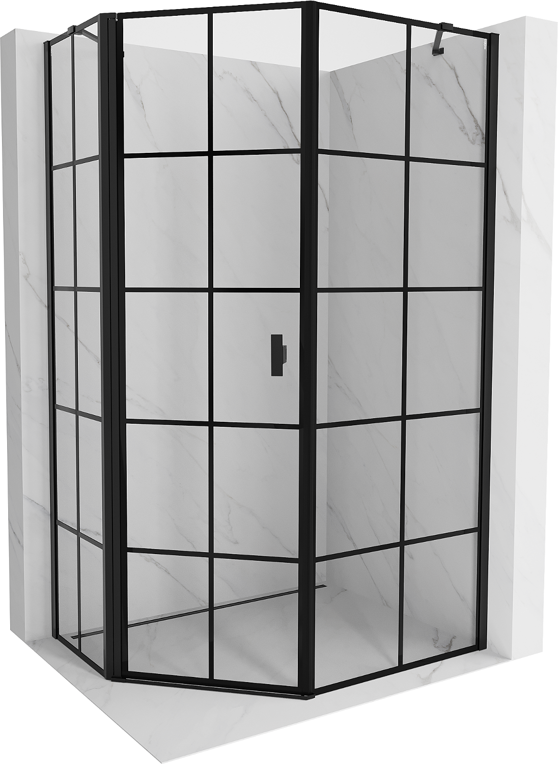 Mexen Mist penkiakampė asimetrinė dušo kabina su varstomomis durimis kairė 80 x 100 cm, juodas tinklelis, juoda