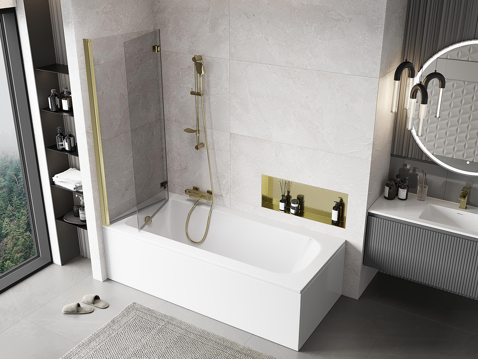Efektyvi apsauga nuo vandens išsiliejimo maudymosi metu. Sienelė turi tarpines, kurios idealiai priglunda prie stiklo paviršiaus ir vonios krašto. Funkcionalus sprendimas, užtikrinantis saugumą ir lengvą švaros palaikymą.