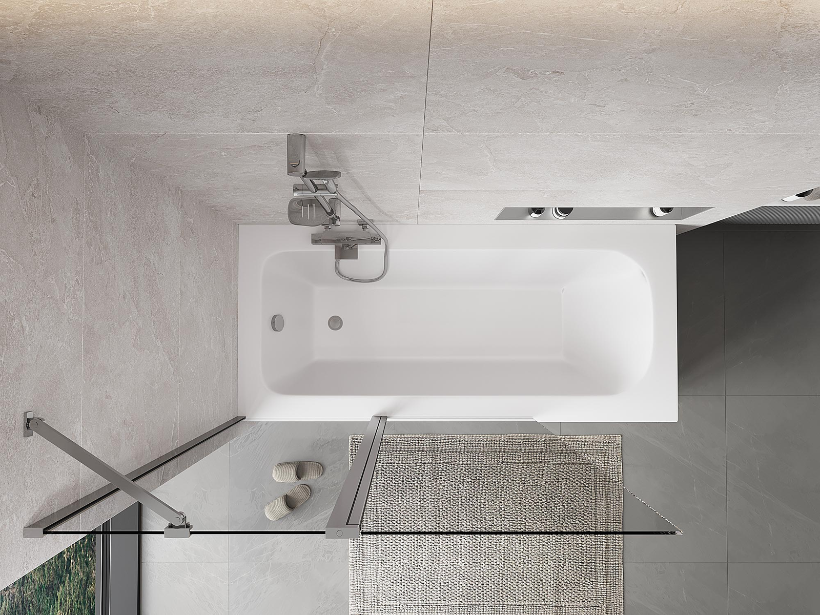 Efektyvi apsauga nuo vandens išsiliejimo maudymosi metu. Sienelė turi tarpines, kurios idealiai priglunda prie stiklo paviršiaus ir vonios krašto. Funkcionalus sprendimas, užtikrinantis saugumą ir lengvą švaros palaikymą.