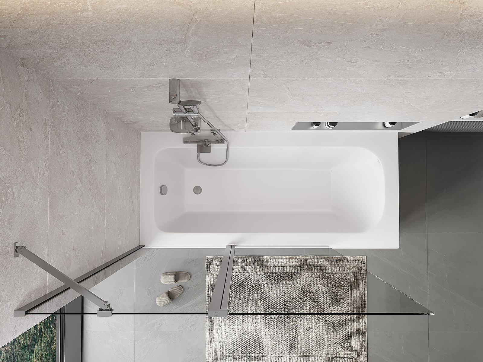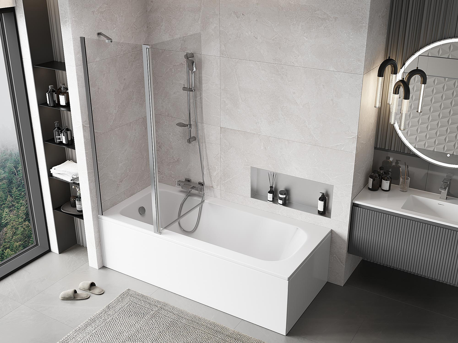 Efektyvi apsauga nuo vandens išsiliejimo maudymosi metu. Sienelė turi tarpines, kurios idealiai priglunda prie stiklo paviršiaus ir vonios krašto. Funkcionalus sprendimas, užtikrinantis saugumą ir lengvą švaros palaikymą.