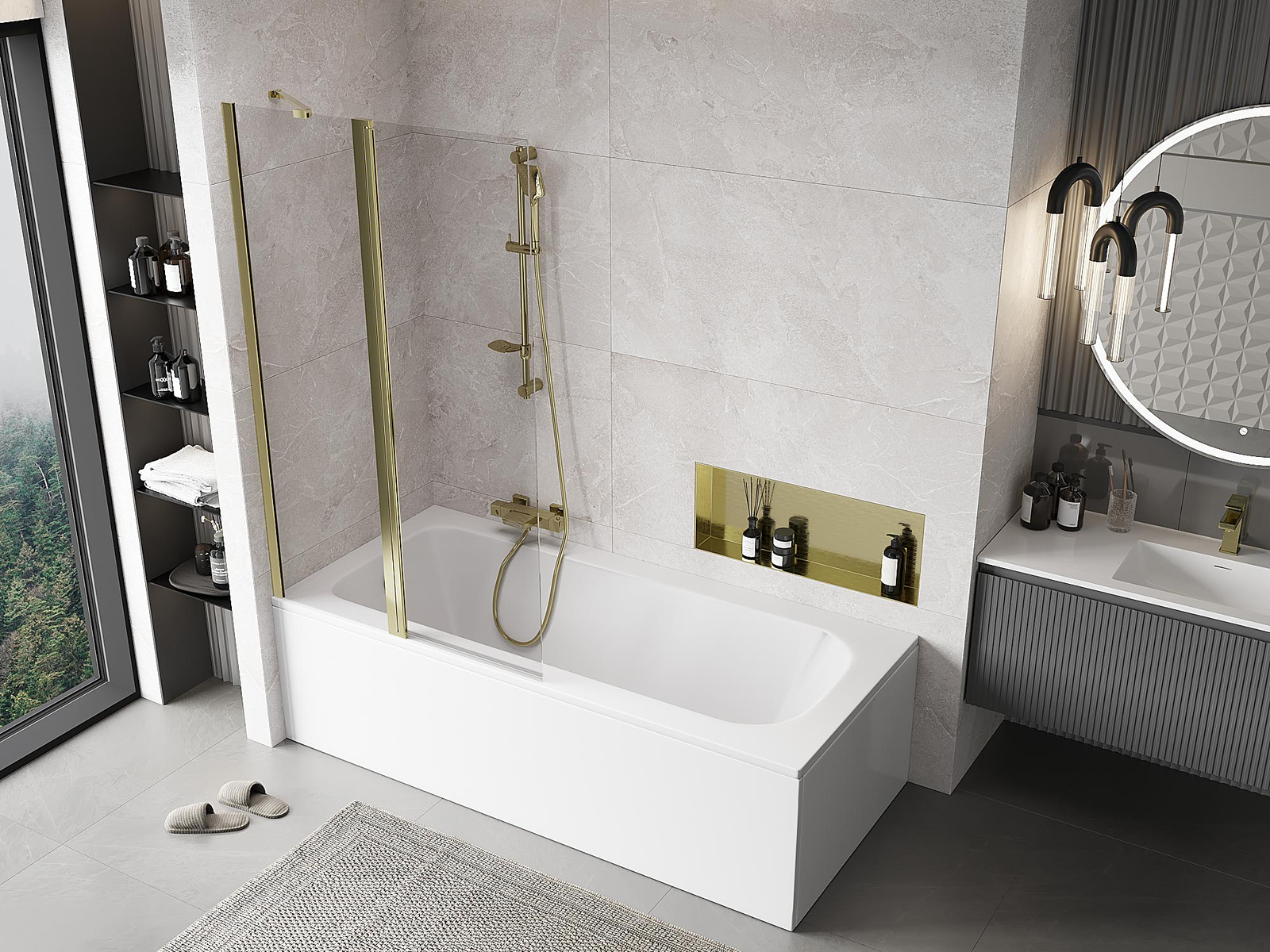 Efektyvi apsauga nuo vandens išsiliejimo maudymosi metu. Sienelė turi tarpines, kurios idealiai priglunda prie stiklo paviršiaus ir vonios krašto. Funkcionalus sprendimas, užtikrinantis saugumą ir lengvą švaros palaikymą.