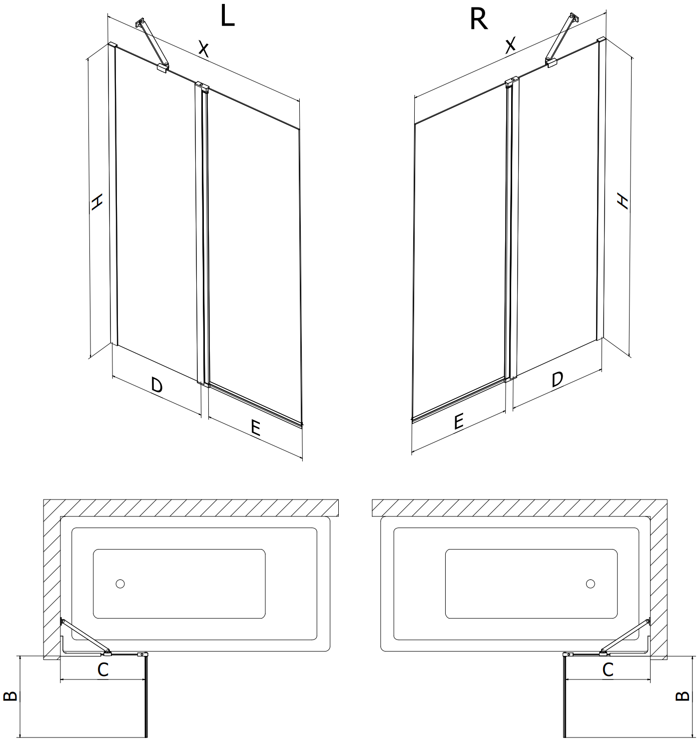 Dėl universalios tvirtinimo sistemos, ekraną galima montuoti tiek dešinėje, tiek kairėje pusėje, priklausomai nuo poreikių. Tokiu būdu galite lengvai suprojektuoti dušą, pritaikytą vonios kambario erdvei.