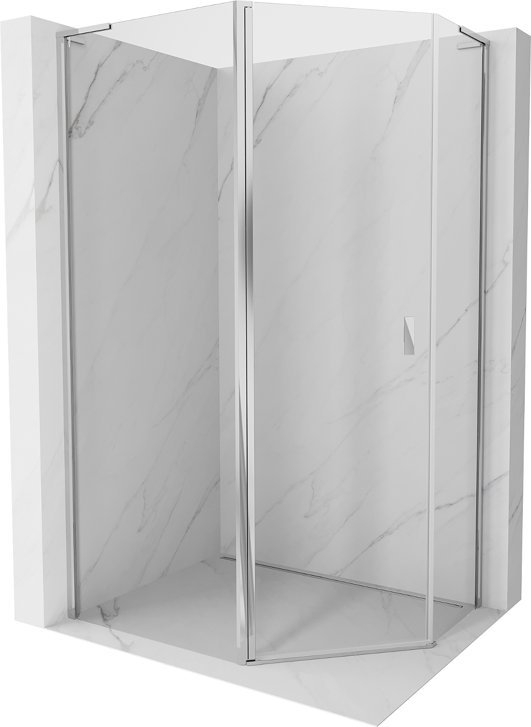 Mexen Mist L asimetriška penkiakampė dušo kabina su atveriamomis durimis 100 x 90 cm, skaidri, chrominė - 8A8L-100-090-01-00