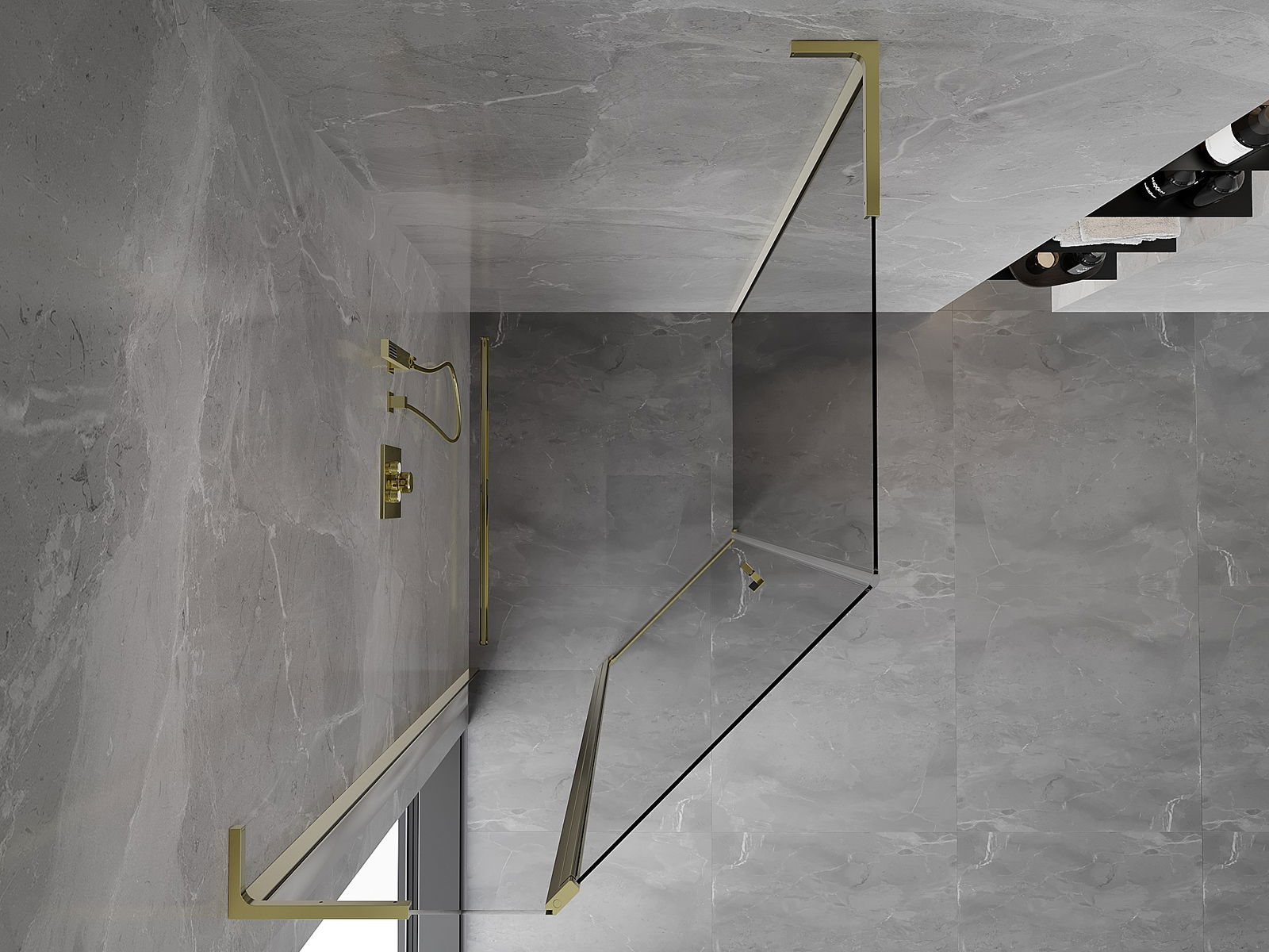 Mexen Mist L penkiakampė asimetriška dušo kabina su atveriamomis durimis 90 x 100 cm, skaidri, auksinė - 8A8L-090-100-50-00